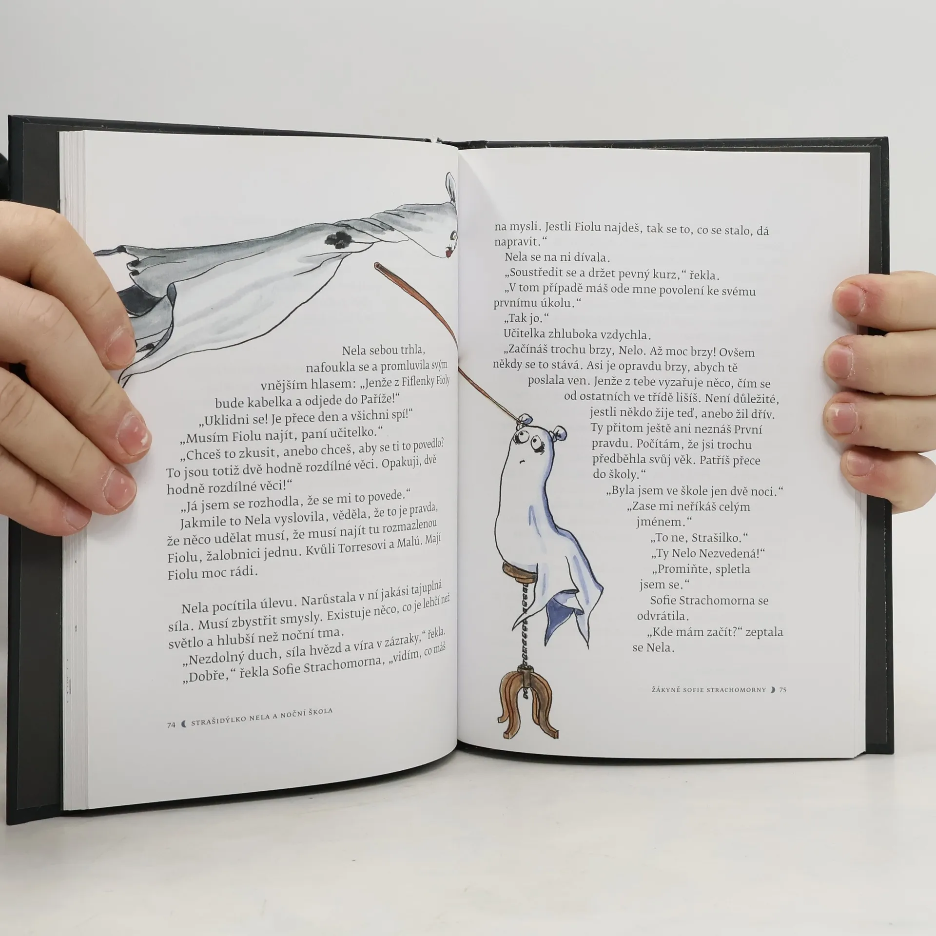 Strašidýlko Nela je sice trochu nezvedné, ale především je vtipné a odvážné. Žije s ostatními strašidly v oděvní továrně, kde přes den spí vzorně poskládané na polici a večer odchází do Noční školy.V ní vyučuje Sofie Strachomorna, která hned pozná, že Nela je výjimečná. A tak když Nela letí do Paříže za nebohou Fiflenkou Fiolou, nasměruje ji na ta správná místa. Zvládne Nela svou první dalekou cestu a podaří se jí spolužačku zachránit? A zjistí, co je První pravda? Nebojte se plachtit s Nezvednou Nelou - není to nijak ugu! A ještě malé upozornění: Je možné, že váš ubrus, ručník, záclona či cokoli jiného látkového není jen tak obyčejný hadřík, proto s nimi zacházejte opatrně a s úctou!