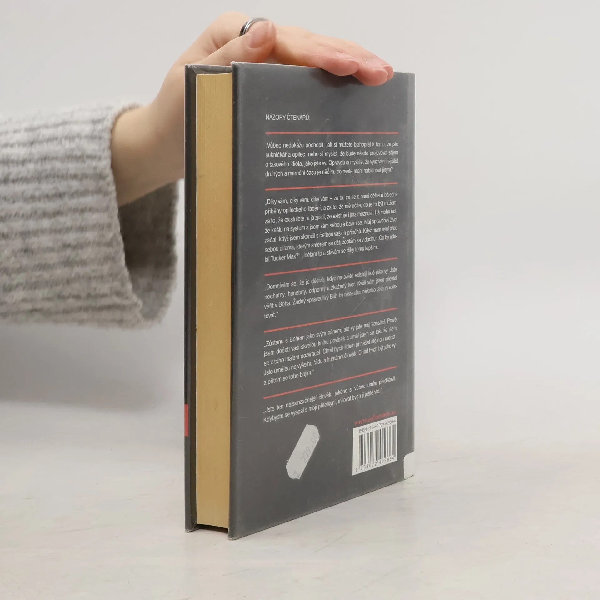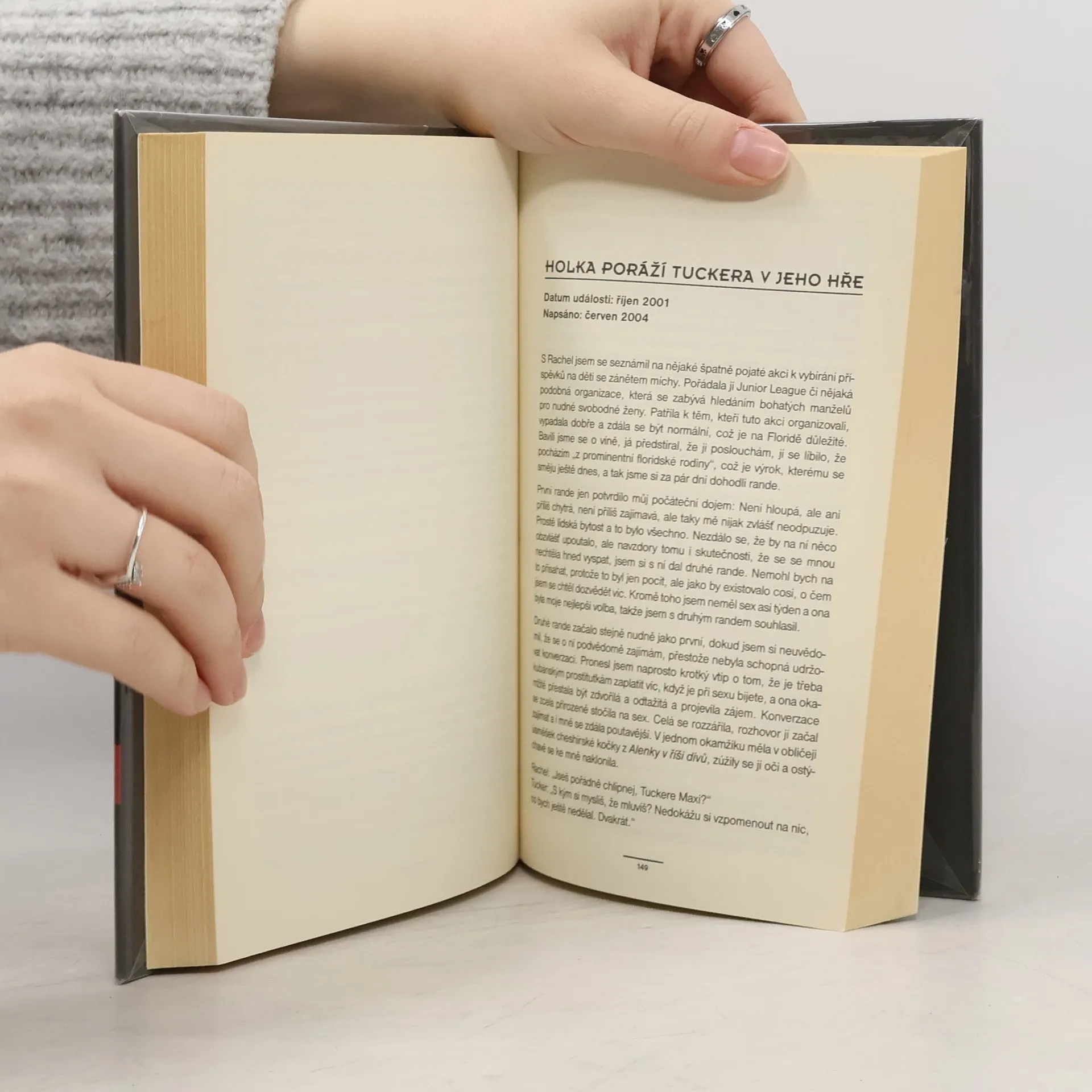 Povídky amerického humoristy… Kniha povídek amerického humoristy Tuckera Maxe patří mezi ty, kterým se buď zasmějete, nebo je budete z duše nenávidět. Autorovi je 32–33 let (webové stránky se neshodují v datu jeho narození), je to bílý heterosexuální právník, který sice práva vystudoval, ale dle svých vlastních slov se jimi neživí, nýbrž se dal na psaní. Příběhy, které popisuje, se odehrály v době, kdy mu bylo od 20 do 29 let (nebo si je vymyslel). A jsou nekončícím proudem alkoholu, sexu, průjmů, zvracení… Měli byste se obrnit zvlášť dobrým žaludkem, až je budete číst, a vypnout mozek. Tuckerův smysl pro humor rozhodně není pro citlivější a sofistikovanější povahy. A varování pro ženy: Chcete-li si uchovat dobré mínění o mužích, rozhodně si tuto knihu nekupujte! Vám na ní nebude připadat směšného nic, snad až na to, že spisovatel je neuvěřitelný hulvát, a přesto se najdou dívky, které to k němu přitahuje. Nebo je to spíš smutné?
