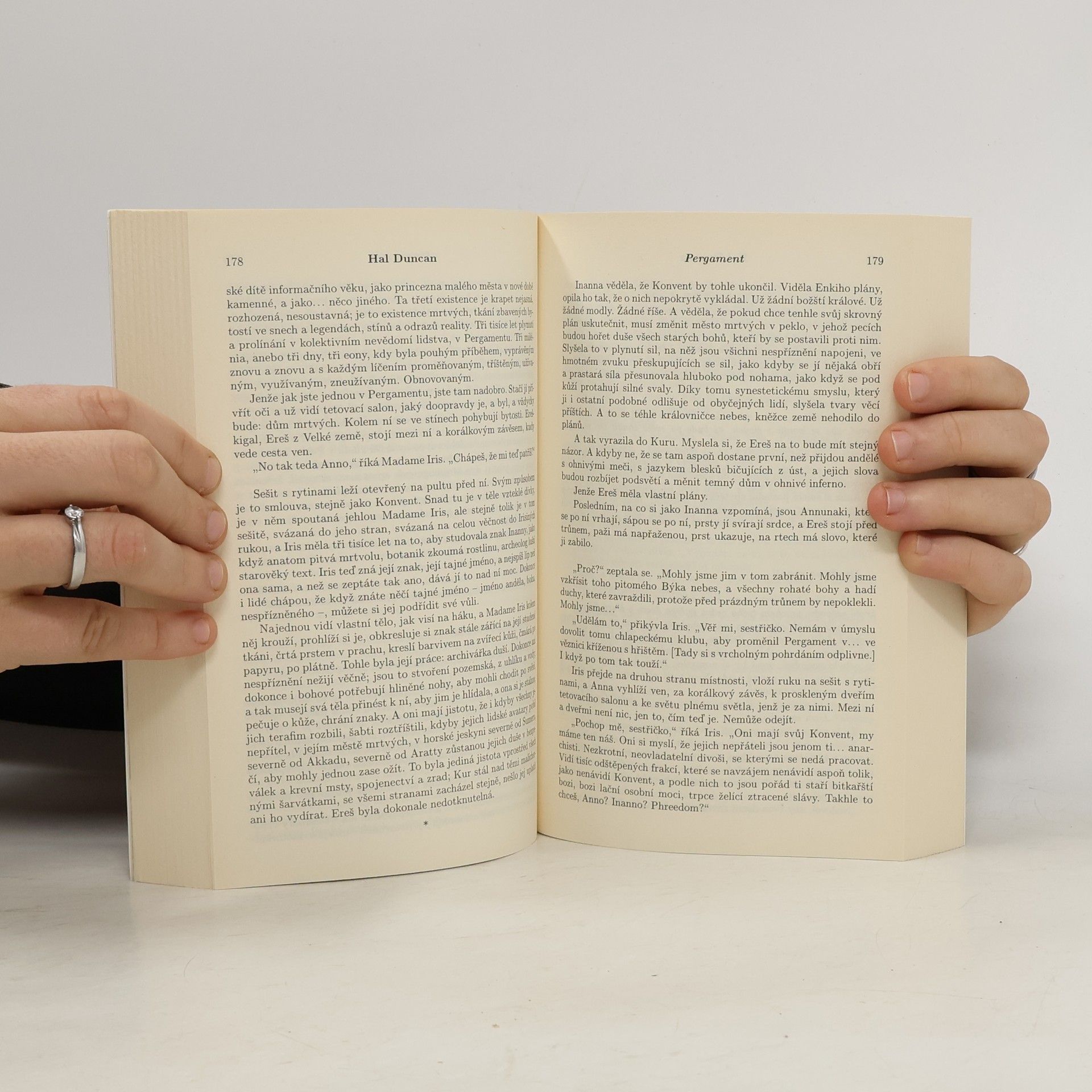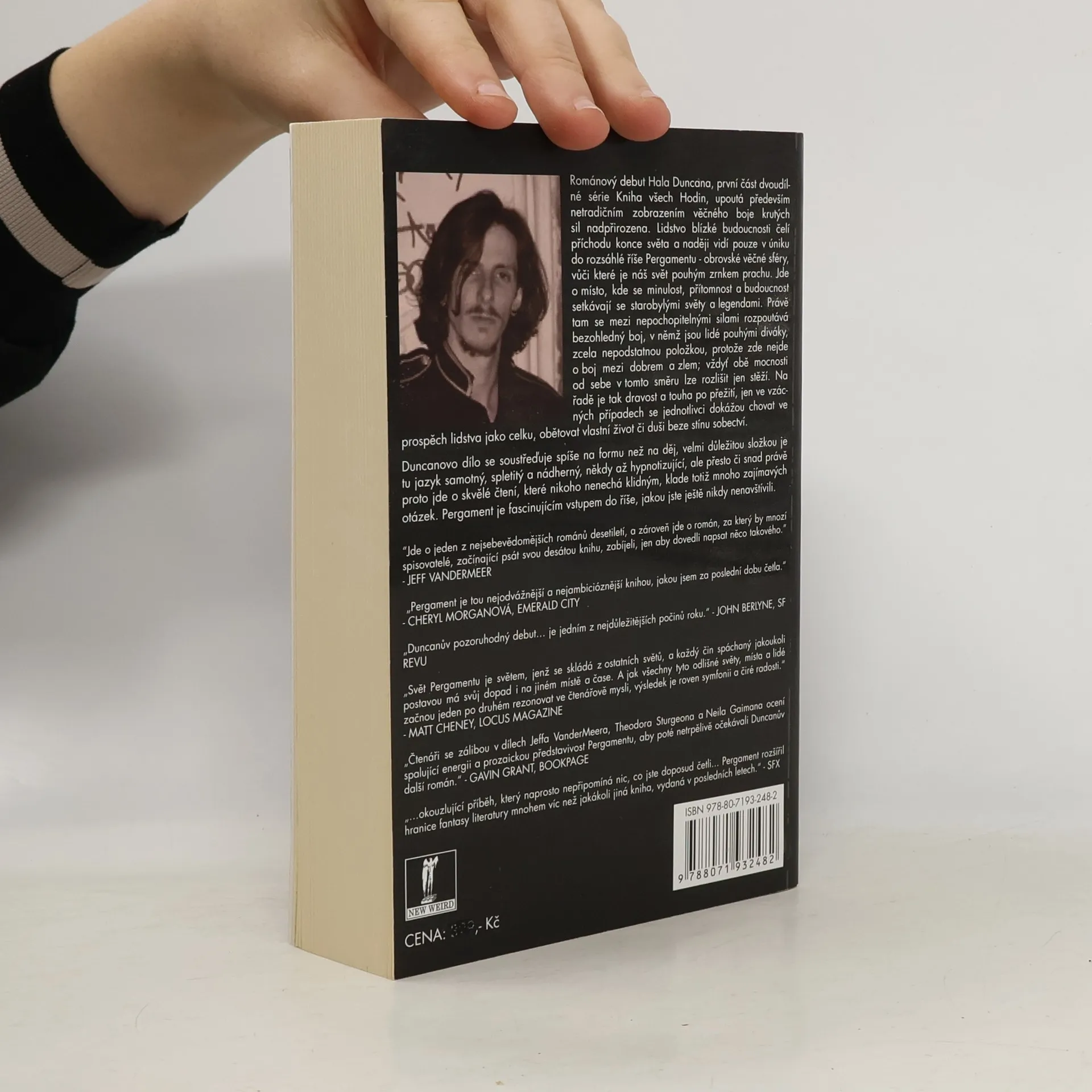 Románový debut Hala Duncana, první díl dvoudílné série Kniha všech hodin, upoutal především netradičním zobrazením věčného boje krutých sil nadpřirozena. Lidstvo čelí v roce 2017 příchodu konce světa a naději vidí pouze v úniku do rozsáhlé říše Pergament. Mezi nepochopitelnými silami se rozpoutává bezohledný boj, v němž jsou lidé pouhými diváky, zcela nepodstatnou položkou, protože zde nejde o boj mezi dobrem a zlem, vždyť obě mocnosti od sebe v tomto směru lze rozlišit jen stěží. Na řadě je bezohlednost a touha po přežití, jen ve vzácných případech se jednotlivci dokážou chovat ve prospěch lidstva jako celku, obětovat vlastní život či duši beze stínu sobectví. Duncanovo dílo se soustředí spíše na formu než na děj, velmi důležitou složkou je tu jazyk samotný, spletitý a nádherný, někdy až hypnotizující, ale přesto či snad právě proto jde o skvělé čtení, které nikoho nenechá klidným, klade totiž mnoho zajímavých otázek. Nemusíte se bát, tohle není žádný náboženský či moralizující text, Pergament je mnohem víc než to, je to vstup do říše, jakou jste ještě nikdy nenavštívili. Skvěle přeložil Richard Podaný.