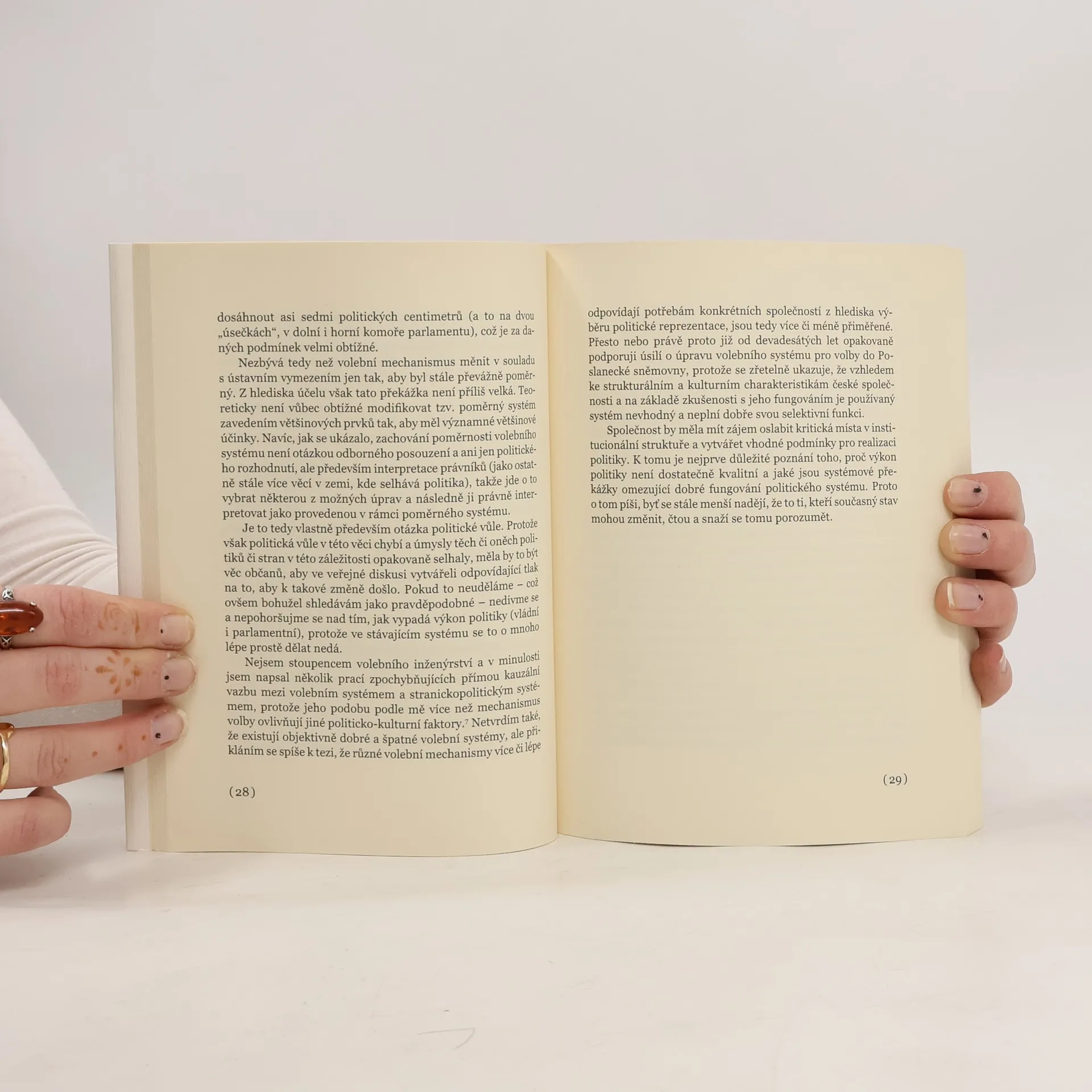 „Možná máte také pocit, že s politikou není něco v pořádku. Nemluvím ovšem k těm z vás, kteří jste takový dojem měli vždy a politiku považujete za špatnou, nezajímavou a nepotřebnou. Hluboce se mýlíte, samozřejmě, vždyť politika je nezbytná součást života společnosti, je důležitá a může a má být dobrá. Kdybych si myslel něco jiného, jistě bych o ní nenapsal tolik textů. Pokud jste ale přesvědčeni o důležitosti politiky, zajímá vás její kvalita, jen máte pocit, že se v poslední době nějak „pokazila", že je jiná a že se v ní a jejím prostřednictvím neřeší ty problémy, které jsou podstatné, že je stále obtížnější věřit nějaké straně, že opravdu udělá to, co slibuje, že jsou politici jaksi horší než dříve, že jde mnohem více o konkrétní ekonomické zájmy než o hledání řešení, jež je dobré pro společnost, že je v politice najednou nějak moc nevůle, byrokracie, korupce a nenávisti - pak vás zvu k četbě této knihy." autor v úvodu knihy