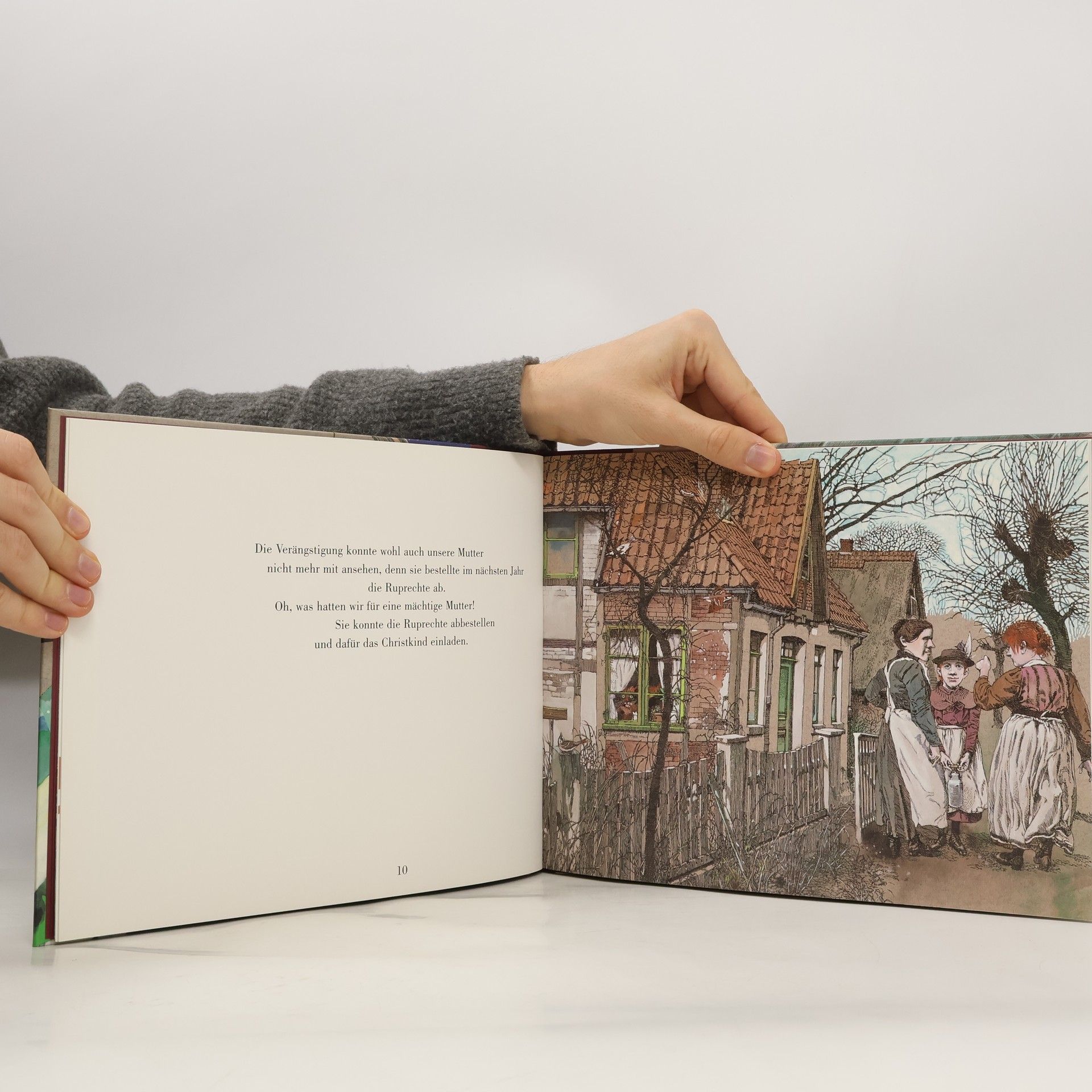 Geheimnisvolle Weihnachten „Wenn die Ruprechthorde in die kleine Dorfschneiderstube meiner Mutter kam, saßen meine Schwester und ich vor Furcht unter dem großen Tisch.“ Erwin Strittmatters Geschichte unserer Weihnachtsbräuche ist eine Liebeserklärung an die Kindheit. Mit zauberhaften Illustrationen von Klaus Ensikat. Strittmatters Weihnachtsgeschichte erzählt mit liebevollem Spott von den bangen Gebeten der Kinder, die sich vor dem ruppigen Ruprecht gewaltig fürchten. Doch dann bestellt die resolute Mutter kurzerhand das Christkind. Es erscheint mit Piepsstimme, in weißen Brautschuhen und Tüllschleier vor den Kindern in der kleinen Dorfschneiderei und wird von den schlauen Kleinen als Nachbarin entlarvt. Nach dem missglückten Christkindbesuch erfindet die rührende Mutter ein neues Weihnachtsgeheimnis: die Werkstatt des Weihnachtsmanns auf dem Dachboden, wo man ihn rumpeln und werkeln hört. Ein seltsamer Heiliger, der als heimliches Geschenk von den Kindern Heringsköpfe und Mäuse bekommt! Strittmatters humorvolle Erzählung hat Klaus Ensikat in einzigartigen Bildern eingefangen, die das Geheimnis der Weihnacht, den Zauber der Landschaft, alte Bräuche und dörflichen Alltag stimmungsvoll illustrieren.