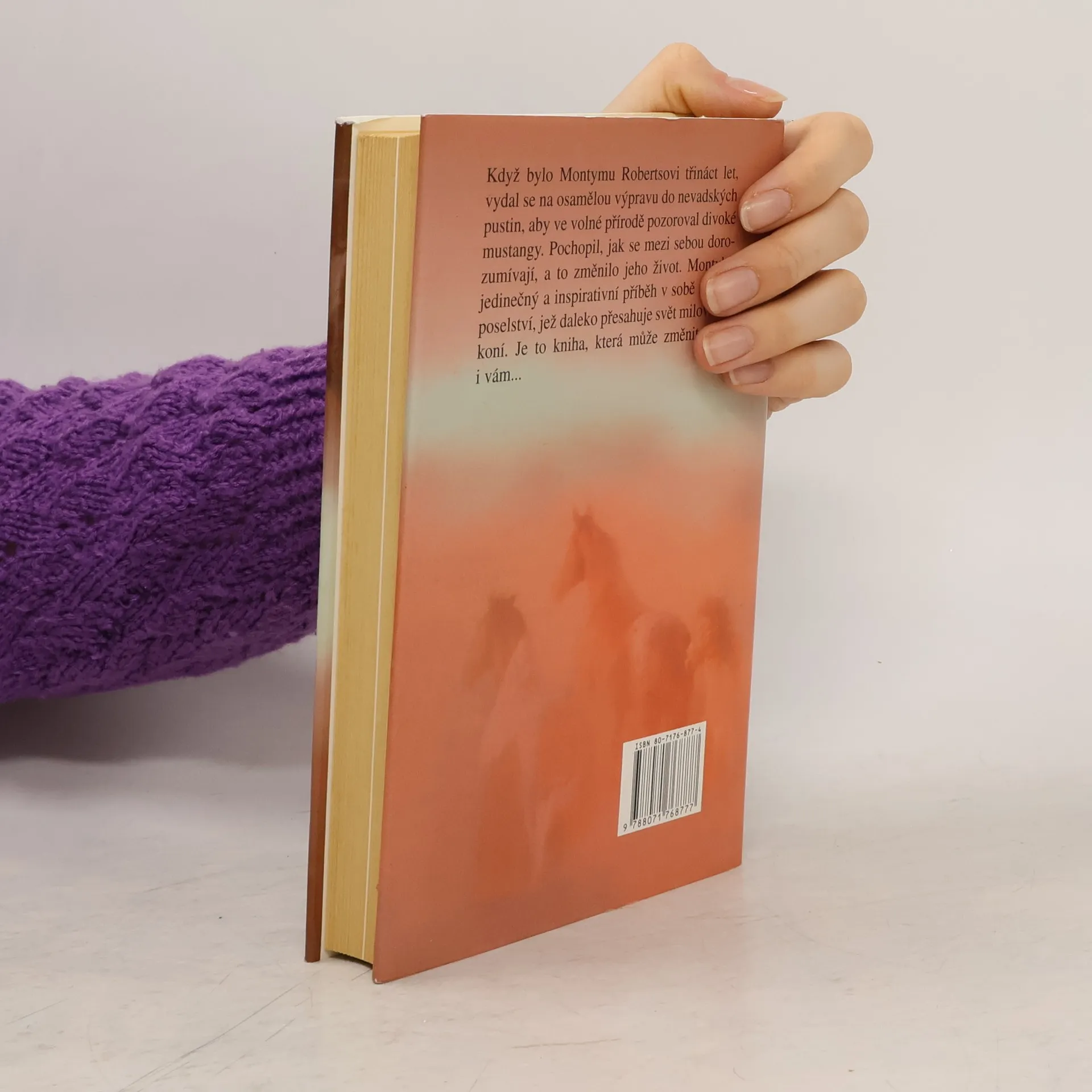 Autobiografická kniha odhaluje fascinující příběh muže, jehož jedinečné metody dorozumívání s koňmi působí téměř magicky, avšak vycházejí z celoživotních zkušeností. Monty Roberts začal jezdit na koni ve dvou letech a od té doby se věnoval práci s těmito zvířaty. Zkoumal jejich chování v divočině, naslouchal jim a učil se jejich jazyku. V knize popisuje své neobyčejné mládí jako rodeový jezdec v Kalifornském Salinasu, potíže s otcem, který neakceptoval jeho tréninkové metody, a úsilí stát se profesionálním trenérem. Zmiňuje také přátelství s hercem Jamesem Deanem a jeho zkušenosti s léčbou problémových dostihových koní. Významným momentem bylo předvedení "napojení" ve Windsorském zámku před královnou Alžbětou II., což vzbudilo zájem trenérů a majitelů koní po celém světě. Kniha nejenže zachycuje fascinující události Robertsova života, ale také vyjadřuje jeho hlubokou lásku ke koním a porozumění, které k nim chová. Jeho osobnost a zkušenosti se staly inspirací pro román Nicholase Evanse. (288 stran, 12 stran obrazová příloha).