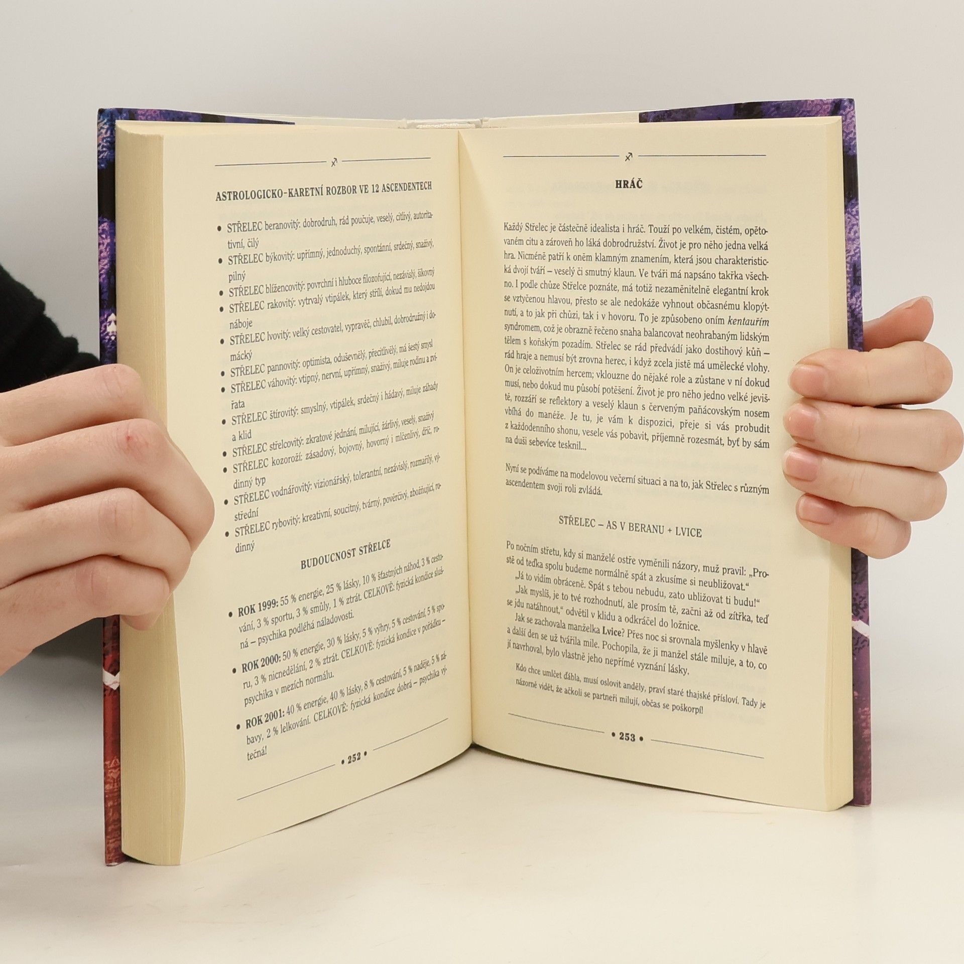 Autorka spojuje astrologicko-karetní věštecké umění a psychologické pozorování osobnosti. Nejznámější česká věštkyně popisuje podrobně jednotlivá zodiakální znamení, rozebírá odpovídající typy osobností i v kombinaci s jednotlivými ascendenty a předvídá jejich budoucnost v nejbližších 3 letech. Své předpovědi doplňuje příběhy ze své bohaté praxe a osobními zkušenostmi s lidmi narozenými v určitých znameních zvěrokruhu. Kniha je doplněna tabulkami pro výpočet ascendentu.