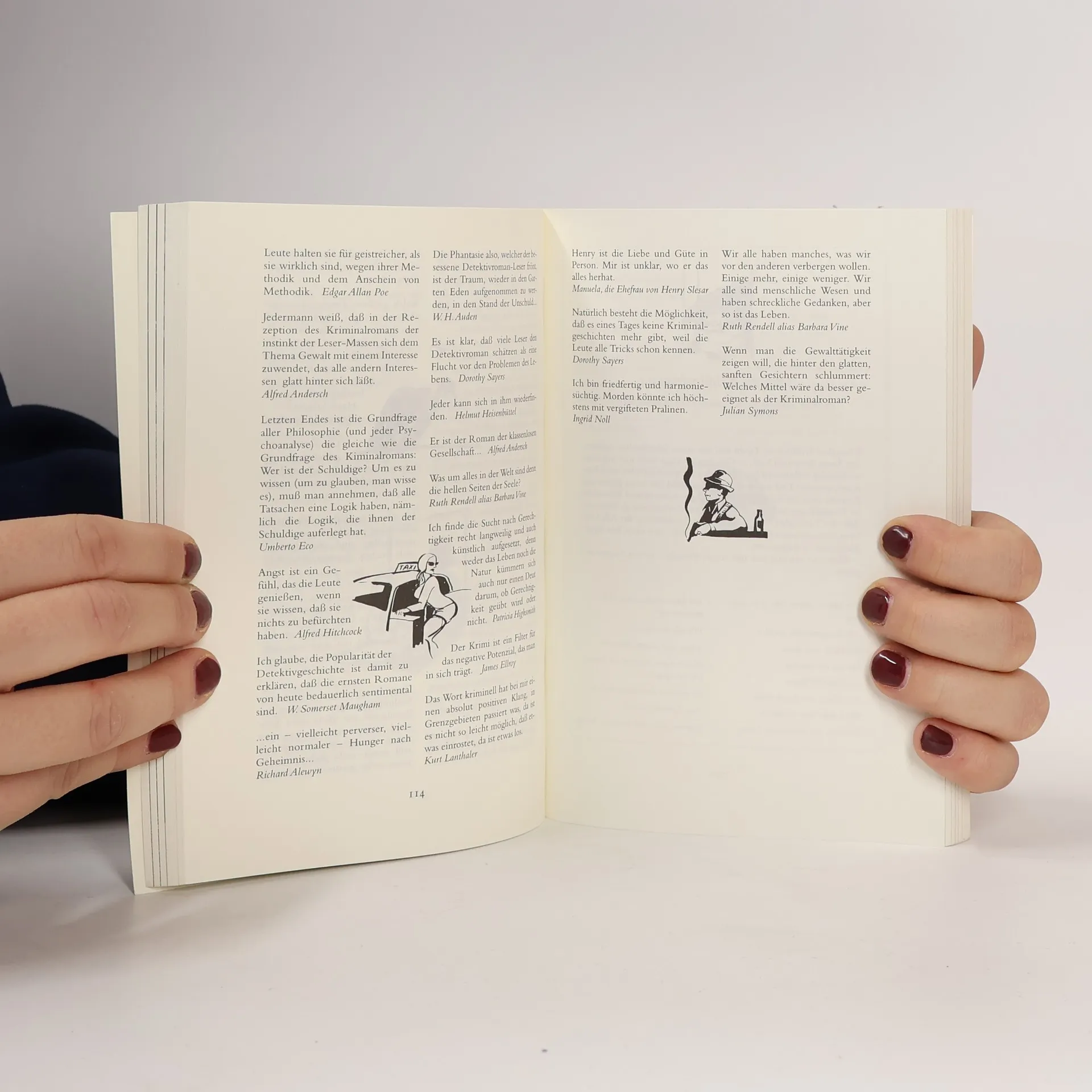 Verbrechen, die sich lohnen: für Leserinnen und Leser. Dafür garantieren die Meisterinnen und Meister des Fachs: von modernen Klassikern wie Raymond Chandler, Jim Thompson, Cornell Woolrich oder Patricia Highsmith bis zu Jakob Arjouni, Ingrid Noll oder Donna Leon. Aber auch Entdeckungen aus Chile, Australien und Griechenland sind zu machen. Kriminalgeschichten muss man lesen, um zu erkennen, was, in moralischer Hinsicht, der Mensch eigentlich ist, so Arthur Schopenhauer. Oder Raymond Chandler: Zeige mir einen Menschen, Mann oder Frau, der Kriminalromane nicht ausstehen kann, und ich zeige dir einen Narren.