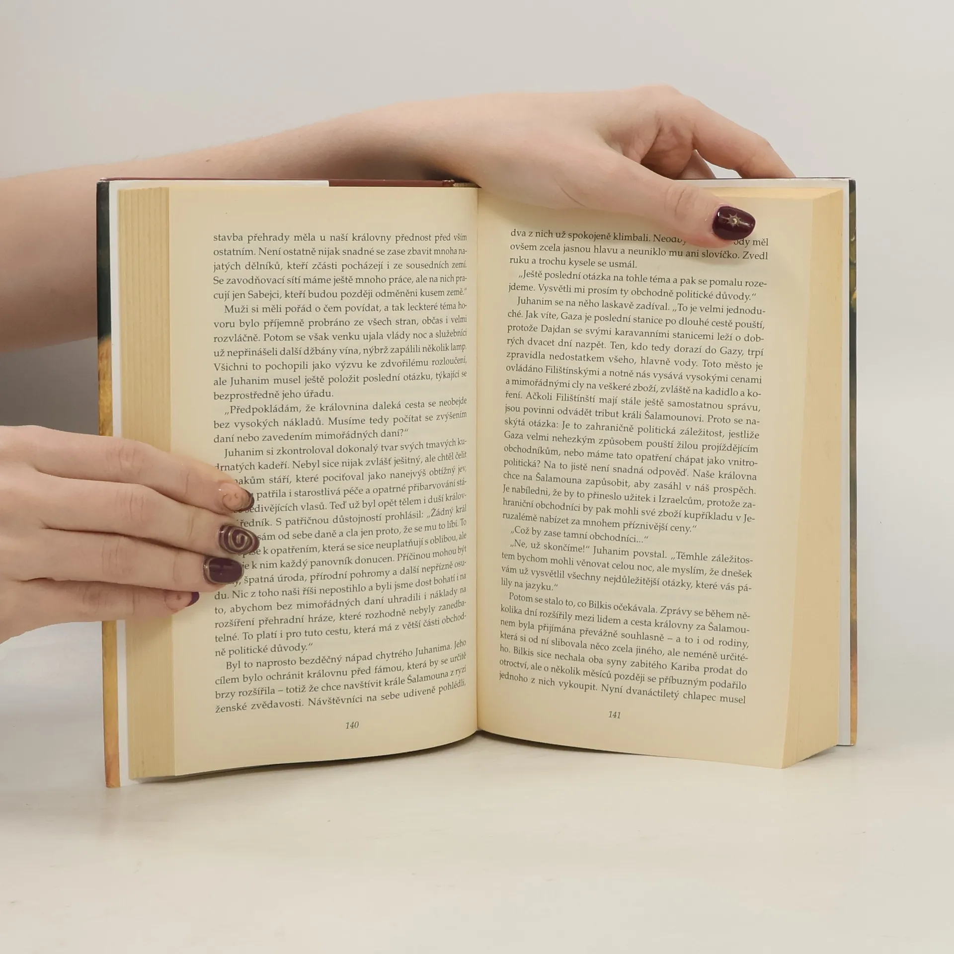 Německý romanopisec se v historickém příběhu navrací do starověku, k osudům legendárních postav krále Šalamouna a královny ze Sáby. Bilkis Balmaka je nejen krásnou ženou, ale i uvážlivou a oblíbenou panovnicí říše Sába. Když se doslechne o nebývalé moudrosti židovského krále Šalamouna, okamžitě se za ním vypraví do Jeruzaléma, kde je velkolepě přivítána. Dvojice je k sobě přitahována vzájemnými sympatiemi a nakonec zahoří i láskou, rozloučení je však neodvratné a královna se navrací do Sáby s darem, který nosí v sobě. V historickém žánru se autor pohybuje bez problémů, takže i tato výprava do starověkého Jeruzaléma je napsána čtivě a přitom zasvěceně, se smyslem pro legendy i historická fakta.... celý text