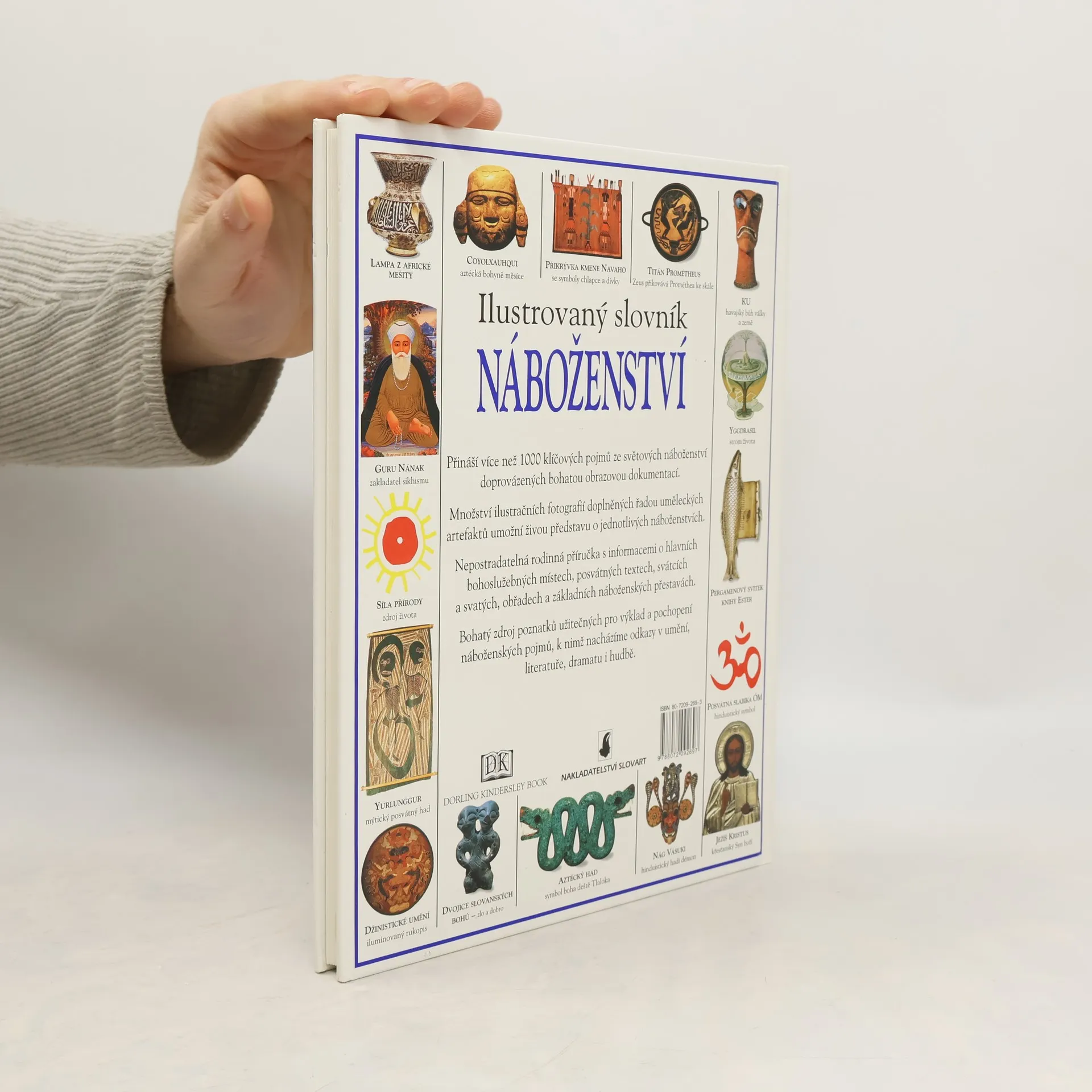 Kniha přináší více než 1000 klíčových pojmů ze světových náboženství doprovázených bohatou obrazovou dokumentací. Množství ilustračních fotografií doplněných řadou uměleckých artefaktů umožní živou představu o jednotlivých náboženstvích. Nepostradatelná rodinná příručka s informacemi o hlavních bohoslužebných místech, posvátných textech, svátcích a svatých, obřadech a základních náboženských představách. Bohatý zdroj poznatků užitečných pro výklad a pochopení náboženských pojmů, k nimž nacházíme odkazy v umění, literatuře, dramatu i hudbě.