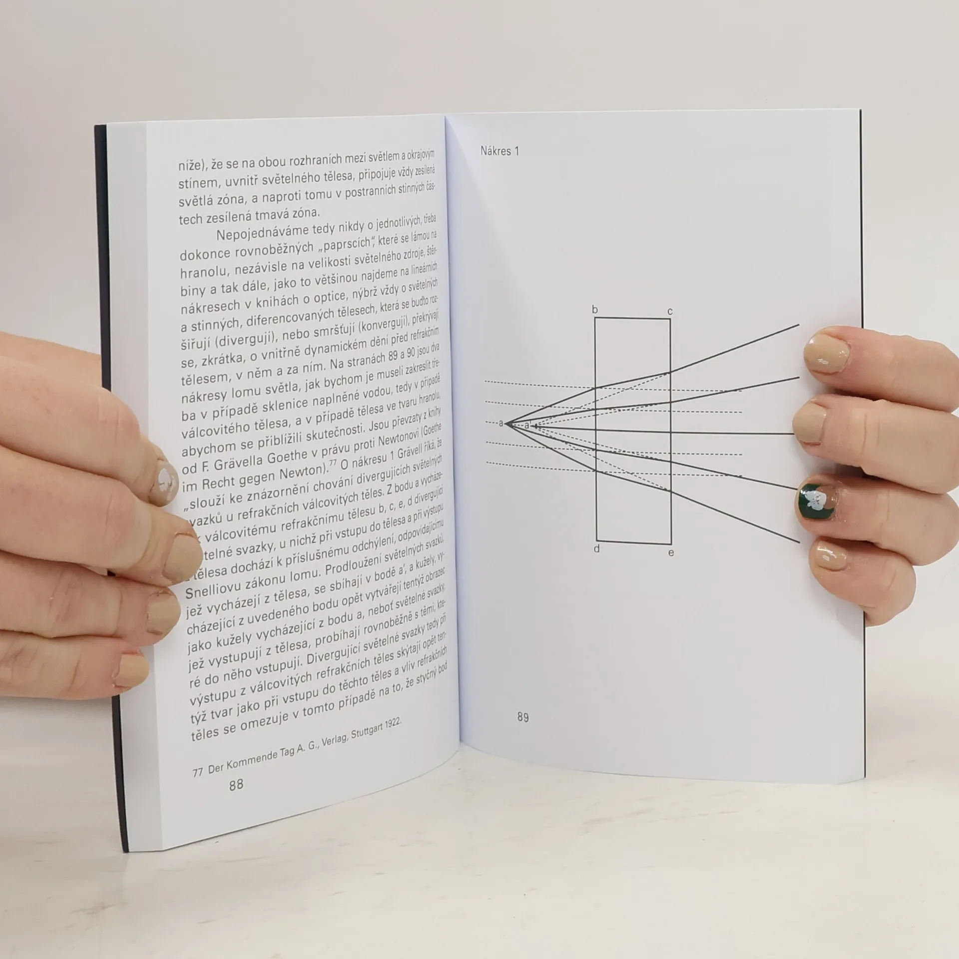 Velký německý básník Johann Wolfgang von Goethe (1749–1832) byl také nadšeným vědcem a ze všech svých prací si nejvíce cenil právě svých přírodovědeckých výzkumů. Jeden z nejpropracovanějších představuje jeho kniha o teorii a vzniku barev „Nauka o barvách“ (1810). Proskauer v této publikaci shrnuje a rozšiřuje Goethovu práci o barvách a především umožňuje čtenáři zažít popisované jevy z první ruky, a to prostřednictvím optického hranolu přiloženého ke knize spolu se speciálními kartami. Kniha je skvělým úvodem do Goethova díla, které je v rozporu s Newtonovou teorií, že „bílé“ světlo se skládá ze spektra všech barev a že pomocí optického hranolu, kterým prochází, lze oddělit ty, jež jsou v něm již přítomny. Proskauer ukazuje, že barevné spektrum pozorované skrz hranol je ve skutečnosti konstrukcí vznikající překrýváním dvou odlišných spekter. Vysvětluje také, že jednotlivé barvy lze pozorovat pouze na rozhraní světla a tmy. Předložená publikace představuje celou řadu dalších fascinujících aspektů a argumentů podporujících Goethův přístup k tématu vzniku barev. Ke knize je přiložen optický hranol a pokusné karty