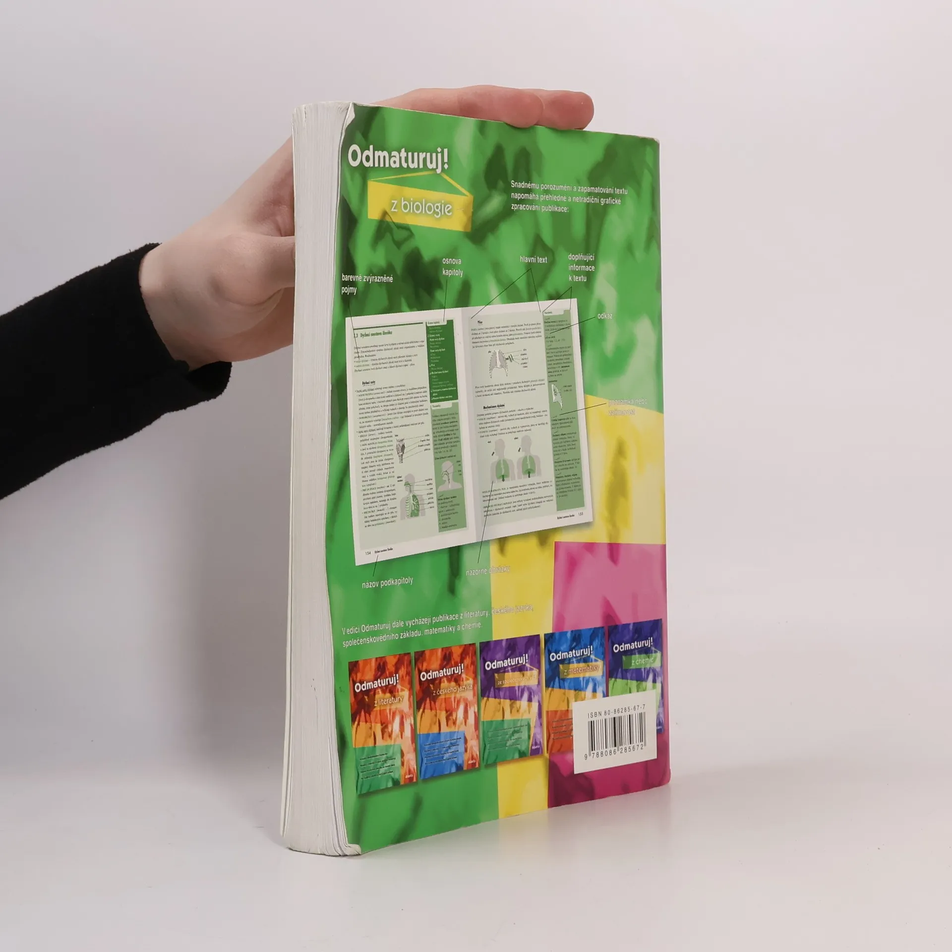 Poutavá učebnice určená k přípravě na maturitu (i k nové podobě maturity) a k přijímacím zkouškám na vysoké školy. Obsahuje celou středoškolskou látku biologie – obecná biologie, biologie jednotlivých skupin organismů: viry, prokaryotické organismy, jednobuněční, rostliny, houby, živočichové, dále biologie člověka, genetika a ekologie. Kniha je přehledně zpracována do 9 větších celků, které jsou dále členěny na menší kapitoly a podkapitoly. Snadnou orientaci v textu podporuje grafické odlišení ústředního textu od doplňujících poznámek. Text je doplněn mnoha přehlednými tabulkami, názornými obrázky a schématy. Určeno studentům všech středních škol během celého středoškolského studia, jejich učitelům a ostatním zájemcům o studium biologie.... celý text