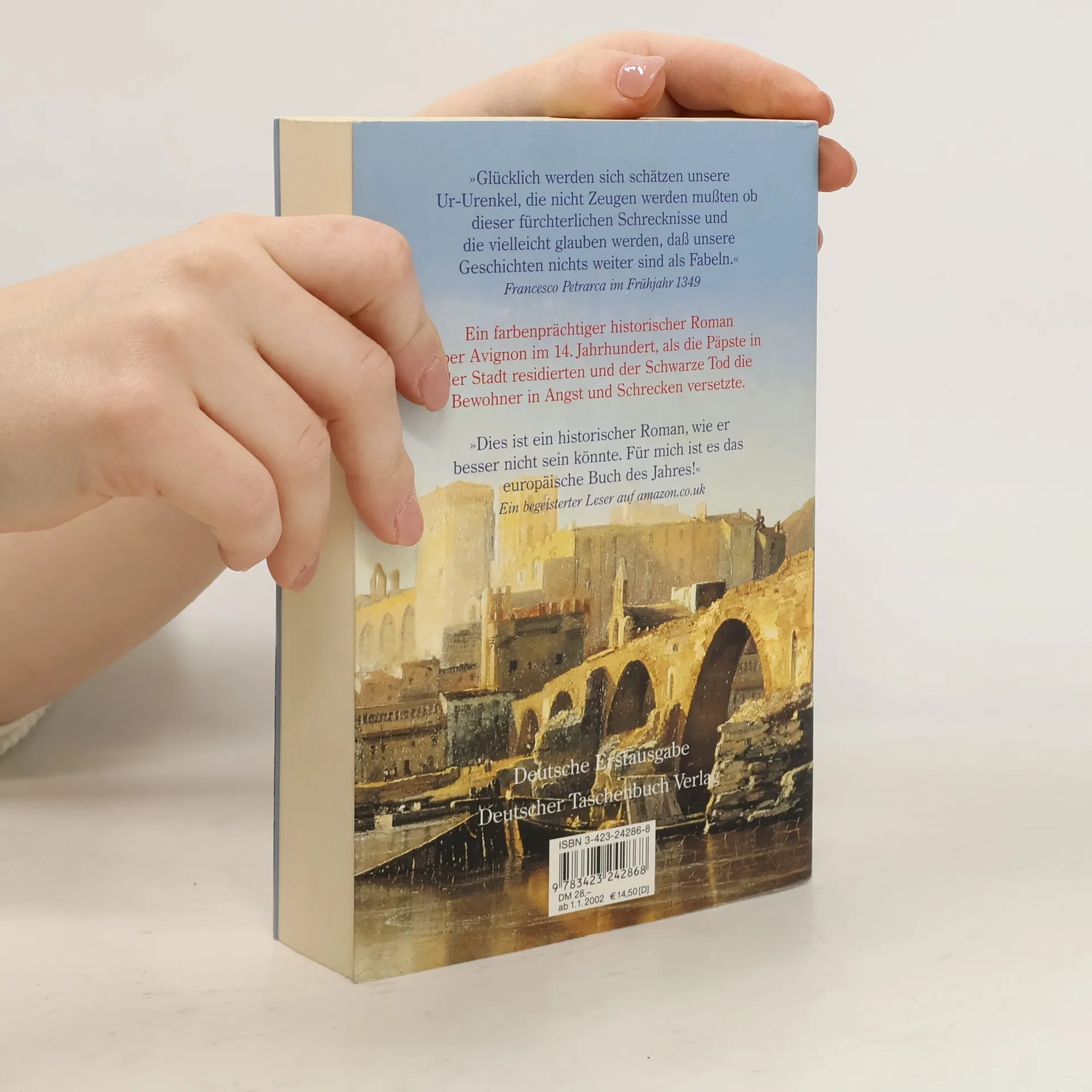 Avignon im Jahre 1346. Überall in Europa wütet der Antisemitismus, als Papst Klemens VI. den Juden der Stadt ein Ghetto errichtet. Seit vier Jahren ist Avignon Mittelpunkt der christlichen Welt, und trotz strengster Auflagen floriert der Handel zwischen der Judenstraße und dem christlichen Teil der Stadt. Abends allerdings schließen sich schützend die Tore der Carri re und lassen niemanden mehr hinein. Fast niemanden. Als der Papst an einem Abend in jenem Juni von rätselhaften Schmerzen geplagt wird, holen seine Leute den besten Medicus der Stadt, den Juden Thoros Bonivassin, damit er ihn heile. Der junge Gelehrte erhält dafür reichlich Lohn, doch auf seinem Weg zurück in die Straße wird er ohmächtig, verliert das Bewußtsein und weiß fortan nicht mehr, wer er ist. Thoros landet im Hospitz der Stadt, wo der Fall des von den Toten Auferstandenen das Interesse des Kardinals LeGor weckt. Während Blanchette, Thoros schöne Schwägerin, auf ihn wartet, geschehen allerei Dinge in Avignon, di e uns die Menschen dieser Stadt und am Hofe des Papstes so lebendig erscheinen lassen, als lebten wir mit ihnen. Und als im Frühjahr 1347 die Pest ausbricht wird deutlich, welches unerbittliche Schicksal sie alle miteinander verbindet.