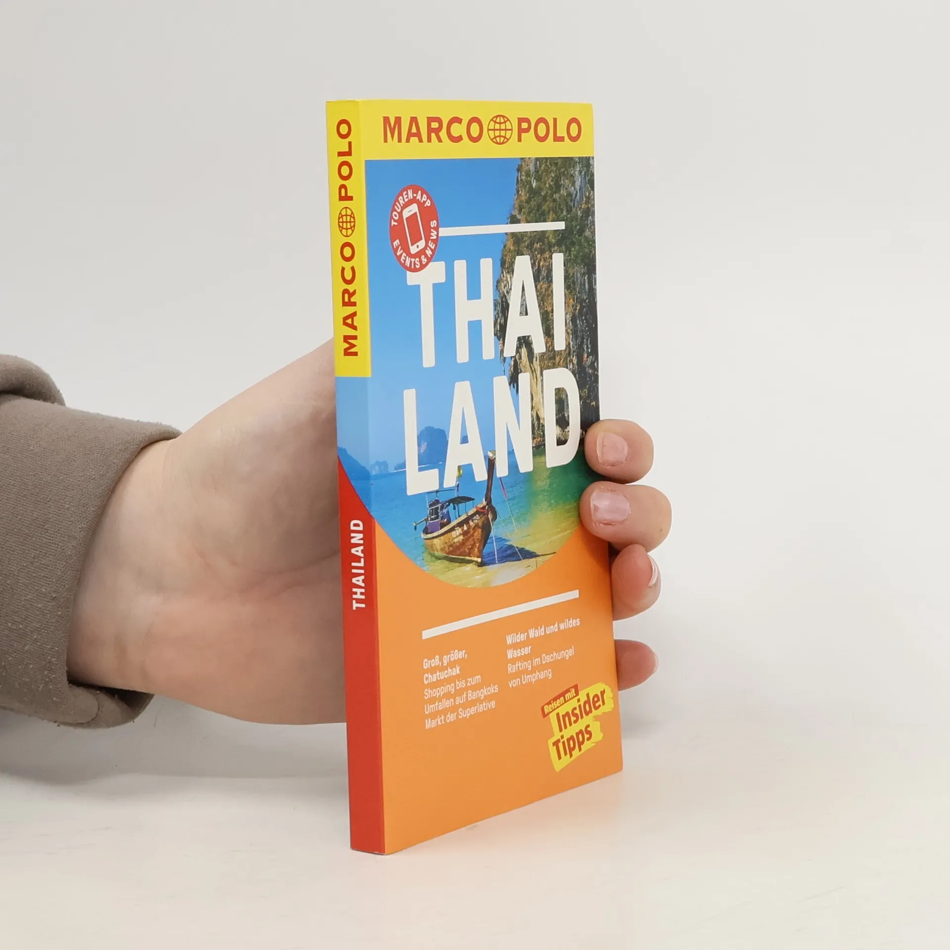 Kompakte Informationen, Insider-Tipps, Erlebnistouren und digitale Extras: Entdecken Sie mit MARCO POLO Thailand intensiv von Chiang Mai im Norden bis nach Phuket im Süden - mit dem MARCO POLO Reiseführer kommen Sie sofort in Thailand an. Erfahren Sie, welche Highlights Sie neben der Palastanlage in Bangkok und einer Wanderung in der Bergwelt Nordthailands nicht verpassen dürfen, wo Sie noch eine Suite im Luxushotel für unter 100 Euro bekommen und dass Sie mit einer grandiosen Fernsicht über Krabi belohnt werden, wenn Sie die 1273 Stufen zum Wat Tam Sua erklimmen. Die Insider-Tipps der Autoren lassen Sie Thailand individuell und authentisch erleben und mit den Low-Budget-Tipps sparen Sie bares Geld. Erkunden Sie Thailand in all seinen Facetten mit den maßgeschneiderten MARCO POLO Erlebnistouren. Das speziell dafür entwickelte Design sorgt - schon beim Lesen und umso mehr vor Ort - für größtmögliche Orientierung. Die kostenlose Touren-App führt Sie digital (und ohne Roaminggebühren) auf den besonderen Wegen der Erlebnistouren. Und Events& News mit aktuellen Veranstaltungen (Ausstellungen, Konzerten, Festivals, Sportevents...) für die nächsten 3 Monate, brandaktuellen Informationen zu den Printinhalten und zusätzlichen Insider-Tipps hält Sie immer auf dem neuesten Stand. In jedem Band gibt es einen übersichtlichen Reiseatlas und eine herausnehmbare Faltkarte - in beide sind natürlich die Erlebnistouren eingetragen.