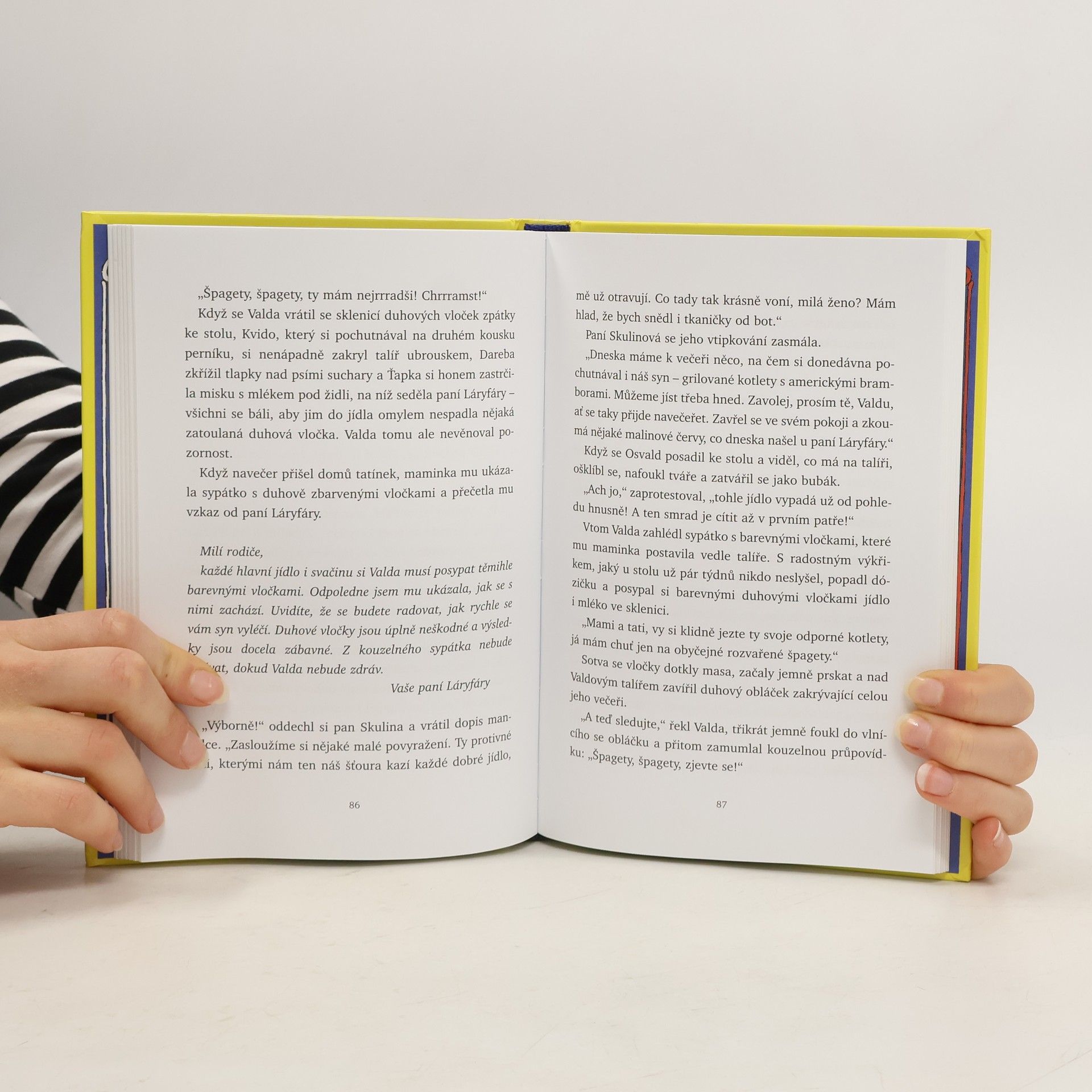 I v tomto novém pokračování nesmírně oblíbené knihy Paní Láryfáry se setkáváme s typickými dětskými nemocemi, které trápí spíš rodiče než děti samotné a při jejichž léčení pomáhá kouzelná paní Láryfáry a její čáry. Další vtipné, veselé a zábavné příběhy o průběhu léčení těchto „chorob“ pocházejí částečně z pera světoznámé autorky Betty MacDonaldové a částečně jsou podle jejích poznámek dopsány dcerou Anne. Kniha vychází zároveň s 1. vydáním v USA jako první neanglický překlad.