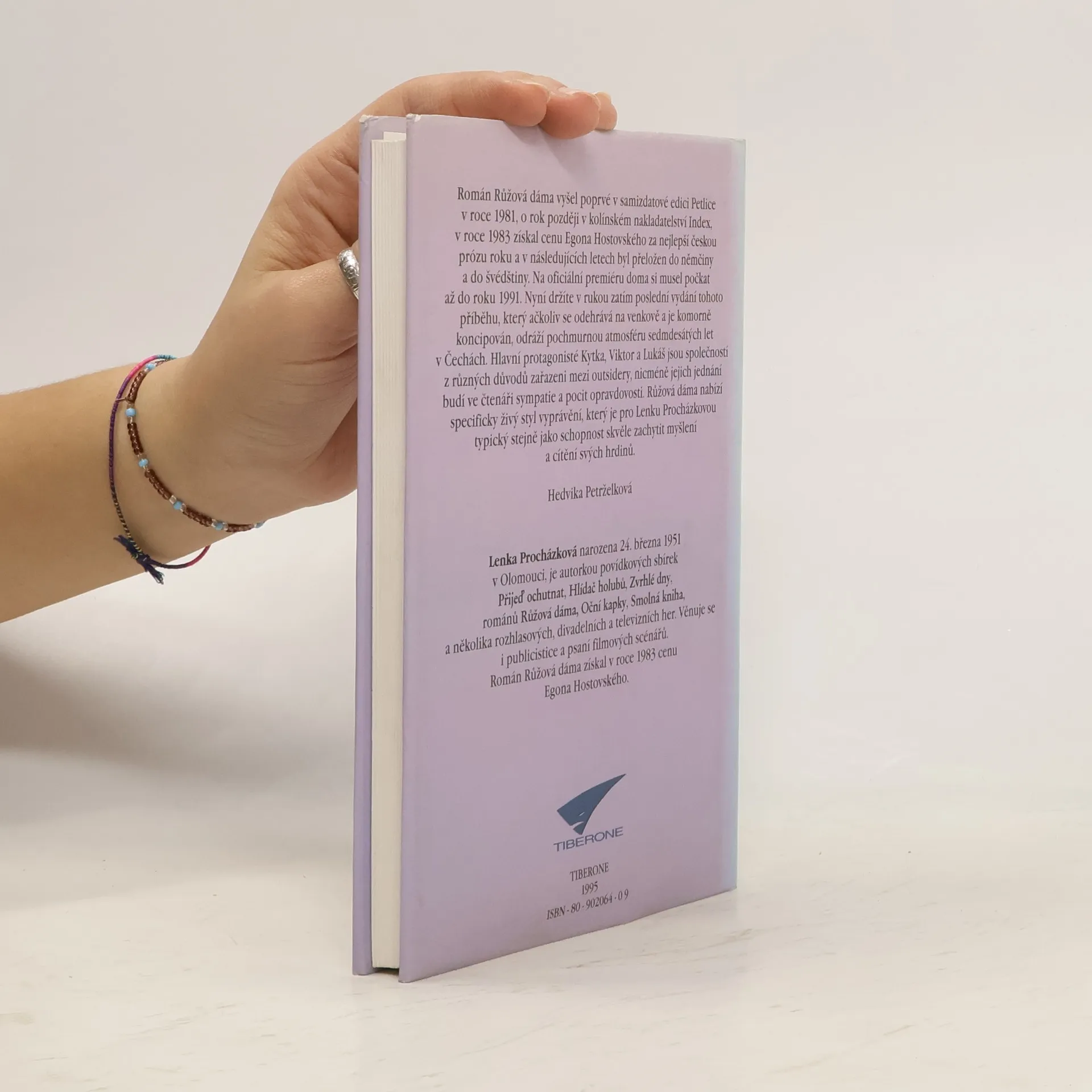 Román o sympatických outsiderech, který vyšel poprvé v samizdatu v roce 1980, a za který autorka získala v roce 1982 cenu Egona Hostovského. Ačkoli se příběh odehrává na venkově a je komorně koncipován, odráží pochmurnou atmosféru sedmdesátých let v Čechách. Hlavní protagonisté Kytka, Viktor a Lukáš jsou společností z různých důvodů zařazeni mezi outsidery, nicméně jejich jednání budí ve čtenáři sympatie a pocit opravdovosti. Růžová dáma nabízí specifický živý styl vyprávění, který je pro Lenku Procházkovou typický stejně jako schopnost skvěle zachytit myšlení a cítění svých hrdinů.