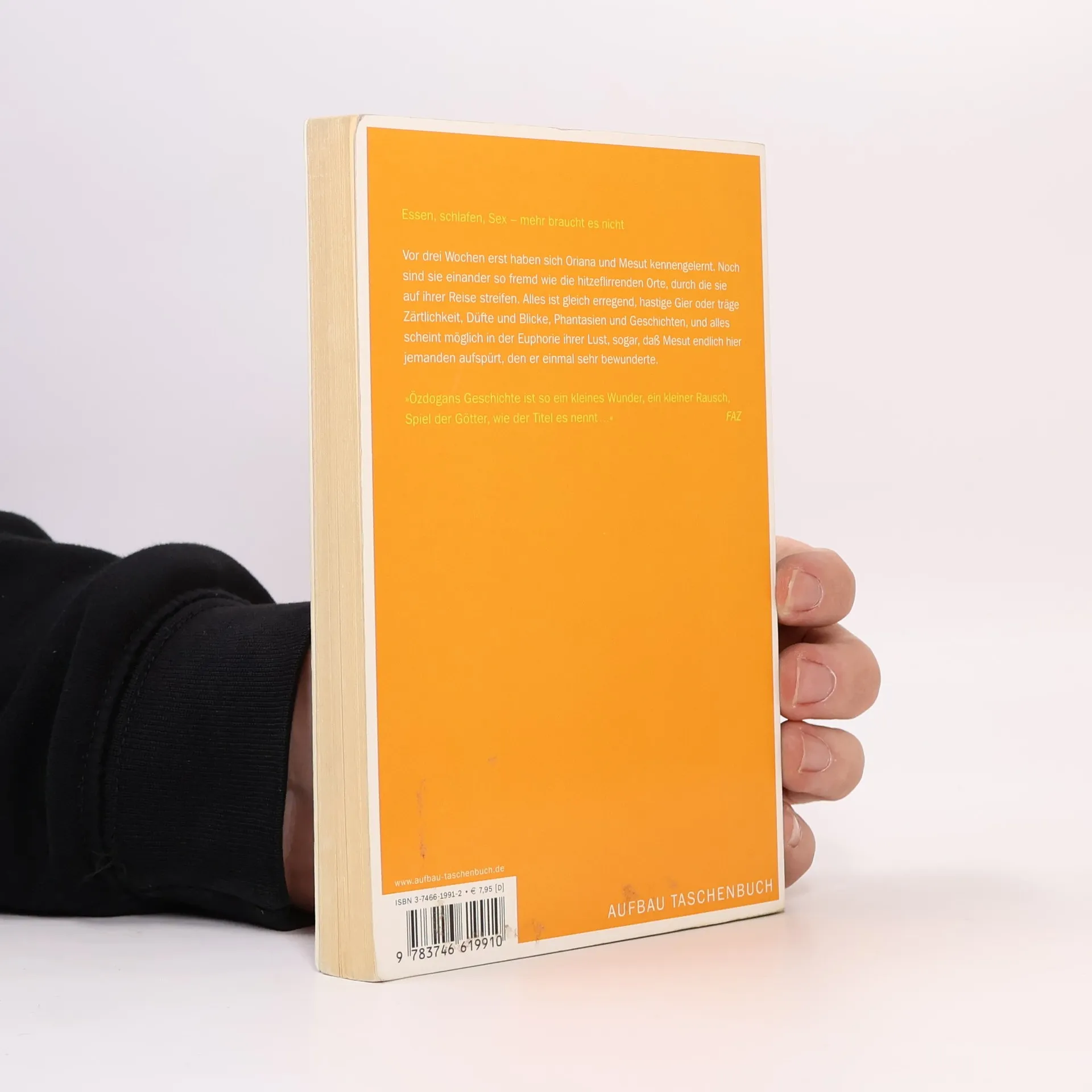 Freizügig, raffiniert und erregend: In diesem neuen Roman von Selim Özdogan entfaltet sich die Geschichte von Oriana und Mesut, die sich in einer aufregenden, geheimnisvollen Welt begegnen. Vor zwei Wochen traf Mesut Oriana, die mit einer Büchse Cola lächelnd vor ihm saß. Ihre schelmische Zahnlücke ließ ihn sofort wissen, dass er sie jeden Tag sehen wollte. Trotz ihrer Fremdheit und der hitzeflirrenden Umgebung, in der sie sich bewegen, ist alles aufregend: hastige Gier, zärtliche Erregung, Düfte, Blicke und Geschichten. Oriana, fasziniert von alten Mythen, und Mesut, der mit Worten und Klängen spielt, erleben eine unbeschwerte Reise, die durch günstige Flugpreise ermöglicht wurde. Doch als Oriana am ersten Morgen die Karten legt und voraussagt, dass Mesut jemanden treffen wird, den er lange nicht gesehen hat, wird die Reise plötzlich bedeutungsvoll. Mesut will zunächst nichts von solchen Voraussagen wissen, bis er erfährt, dass sein als verschollen geglaubter Cousin in der Nähe sein könnte. So folgen sie seinen Spuren und die unbeschwerte Reise erhält ein Ziel, das sie immer tiefer in ihre eigene Geschichte führt.