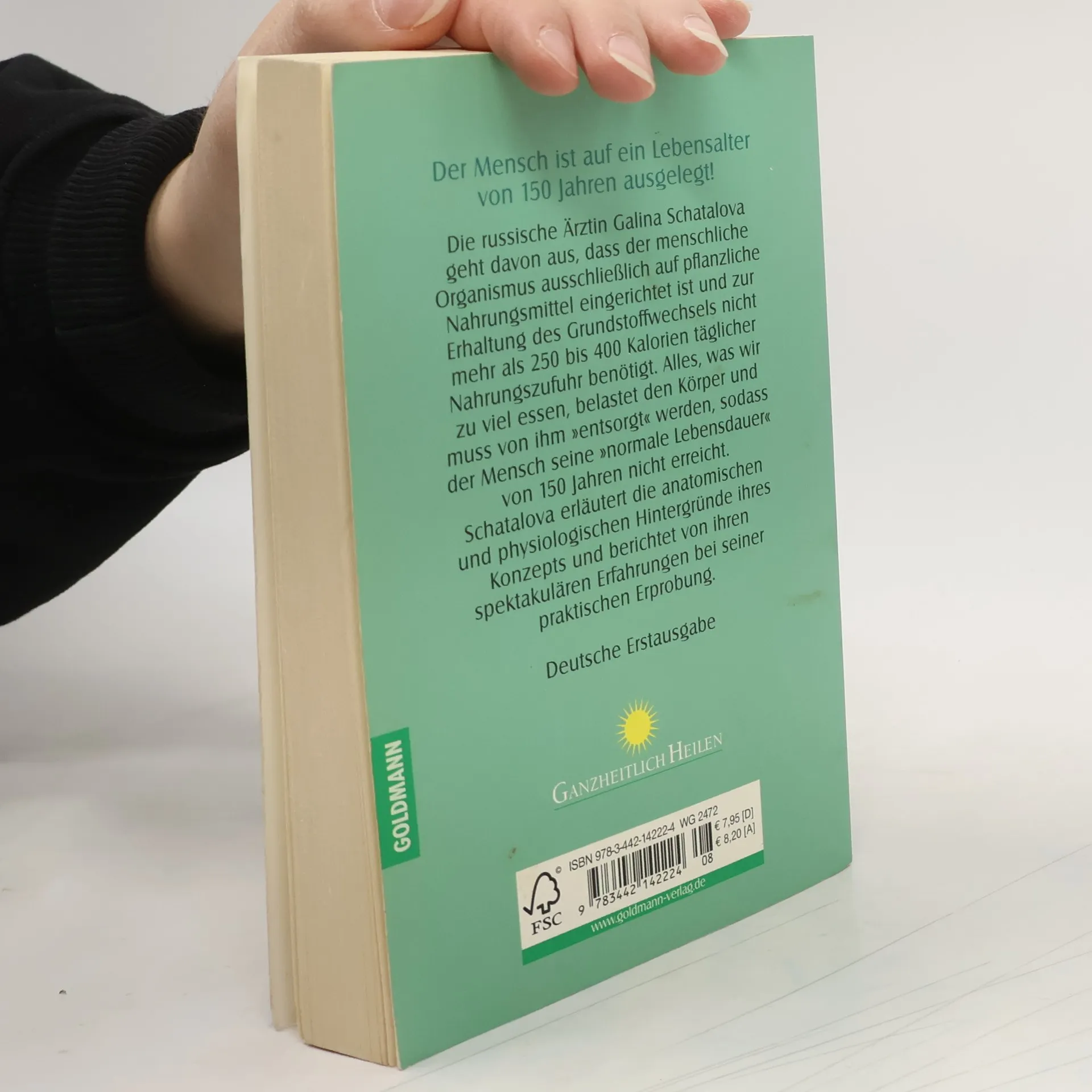 Die russische Ärztin Galina Schatalova geht davon aus, dass der menschliche Organismus ausschließlich auf pflanzliche Nahrungsmittel eingerichtet ist und zur Erhaltung des Grundstoffwechsels nicht mehr als 250 bis 400 Kalorien täglicher Nahrungszufuhr benötigt. Alles, was wir zu viel essen, belastet den Körper und muss von ihm \"entsorgt\" werden, sodass der Mensch seine \"normale Lebensdauer\" von 150 Jahren nicht erreicht. Schatalova erläutert die anatomischen und physiologischen Hintergründe ihres Konzepts und berichtet von ihren spektakulären Erfahrungen bei seiner praktischen Erprobung. (Verlagsangabe)