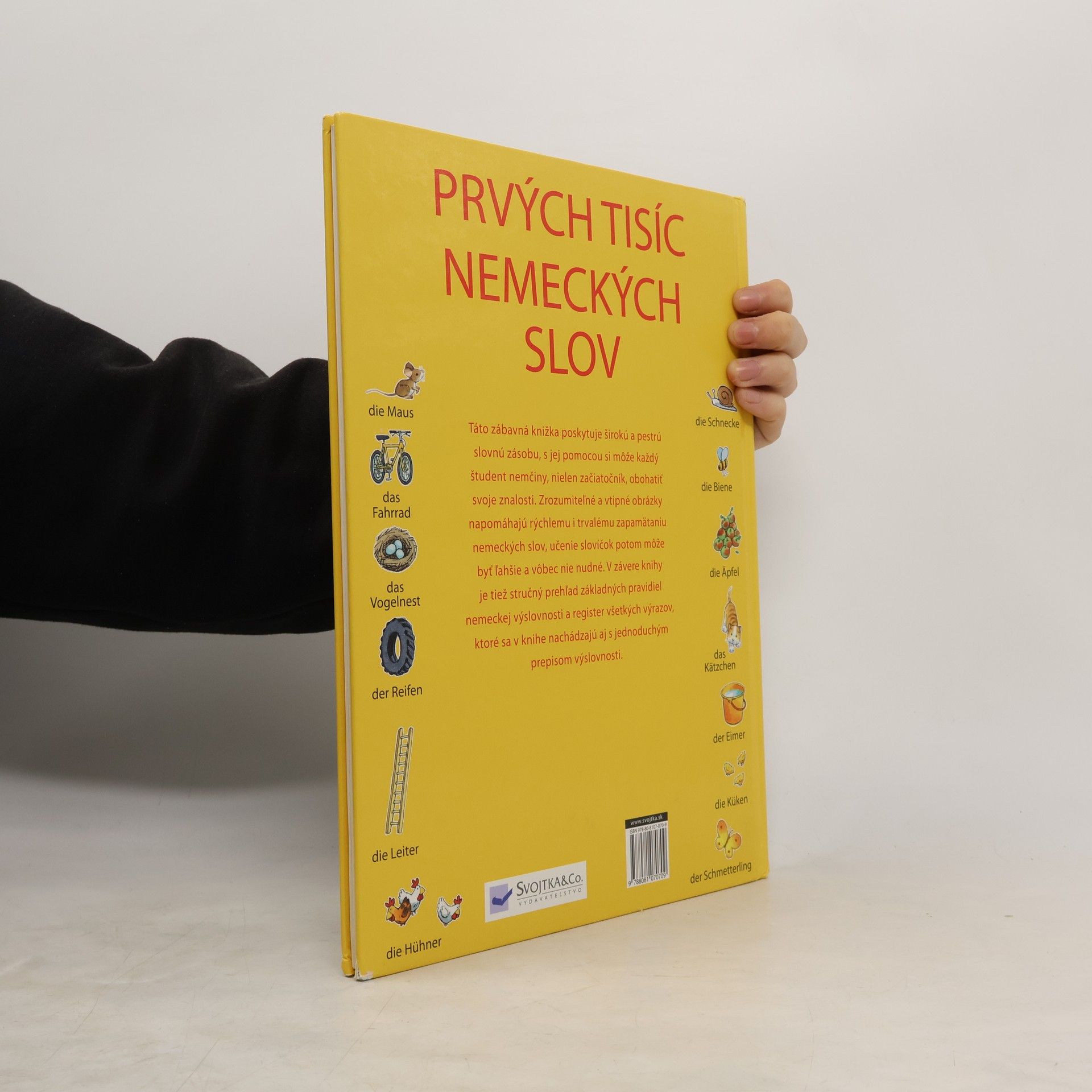 Táto zábavná knižka poskytuje širokú a pestrú slovnú zásobu, s jej pomocou si môže každý študent nemčiny, nielen začiatočník, obohatiť svoje znalosti. Zrozumiteľné a vtipné obrázky napomáhajú rýchlemu i trvalému zapamätaniu nemeckých slov.