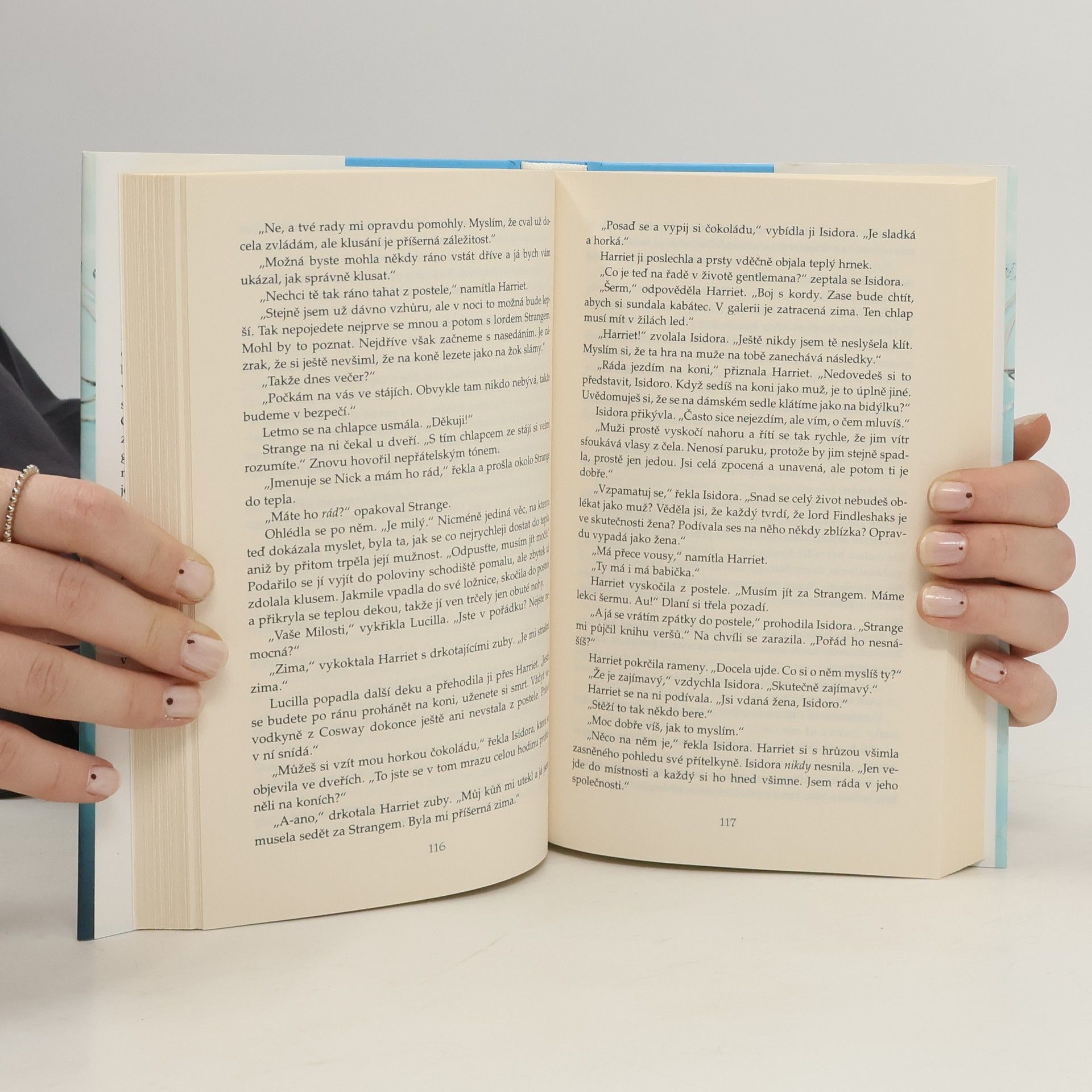 Harriet má už dost povinností spojených se svým titulem vévodkyně z Berrow, nudí ji uhlazené čajové dýchánky i elegantní bály. Tak ráda by zavítala na nějaký nespoutaný večírek, kde by mohla popustit uzdu svým skrytým přáním a touhám! Ovšem kdyby navštívila nechvalně známou sešlost v sídle lorda Strangea, jež proslulo jako místo setkání nespoutaných mužů, žen i milostných hrátek, nevyhnula by se skandálu. A právě proto se musí přestrojit za někoho jiného… Lord Strange se těší na další noc plnou nevázané vášně…, ale pak zjistí, že onen rozkoší chtivý mladík je ve skutečnosti nejkrásnější ženou v místnosti. Proč jen takováto žena navštíví místo neřesti a dává tím v sázku svou dobrou pověst? A co víc - byla by ochotna zůstat? Nejen na dnešní noc, ale napořád?