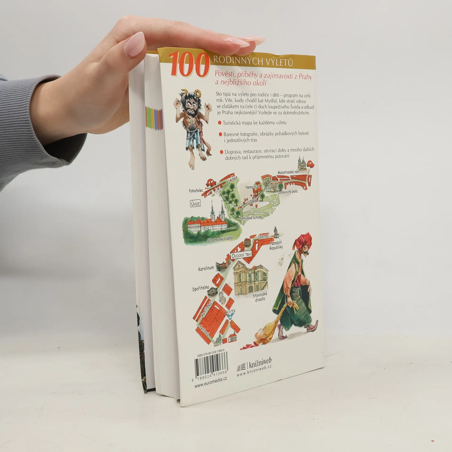 Sto tipů na výlety pro rodiče i děti - program na celý rok. Víte, kudy chodil kat Mydlář, kde straší vdova se zlaťákem na čele či duch loupeživého Švéda a odkud je Praha nejkrásnější? Vydejte se za dobrodružstvím. Turistická mapa ke každému výletu, barevné fotografie, obrázky pohádkových bytostí i jednotlivých tras, doprava, restaurace, otvírací doby a mnoho dalších dobrých rad k příjemnému putování.