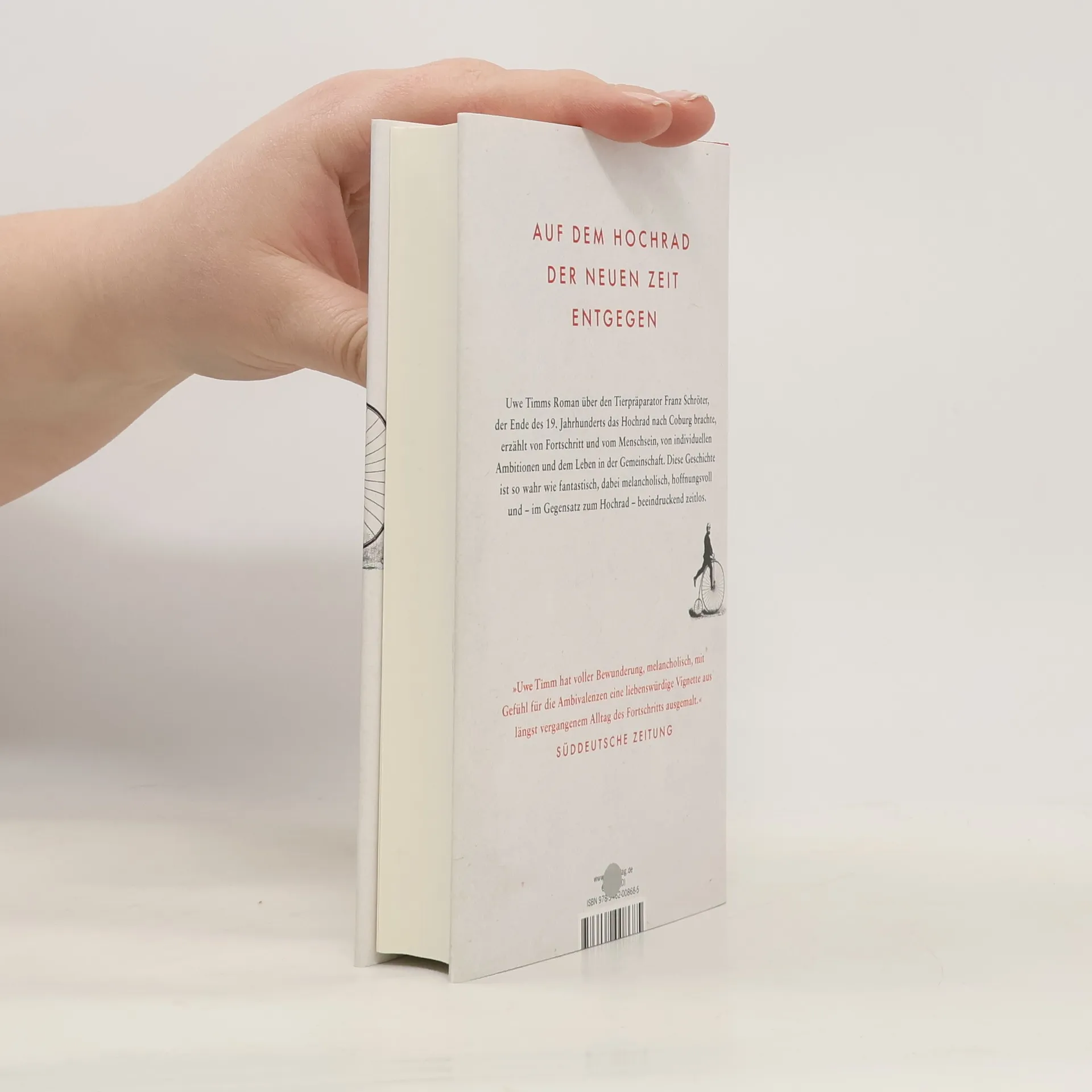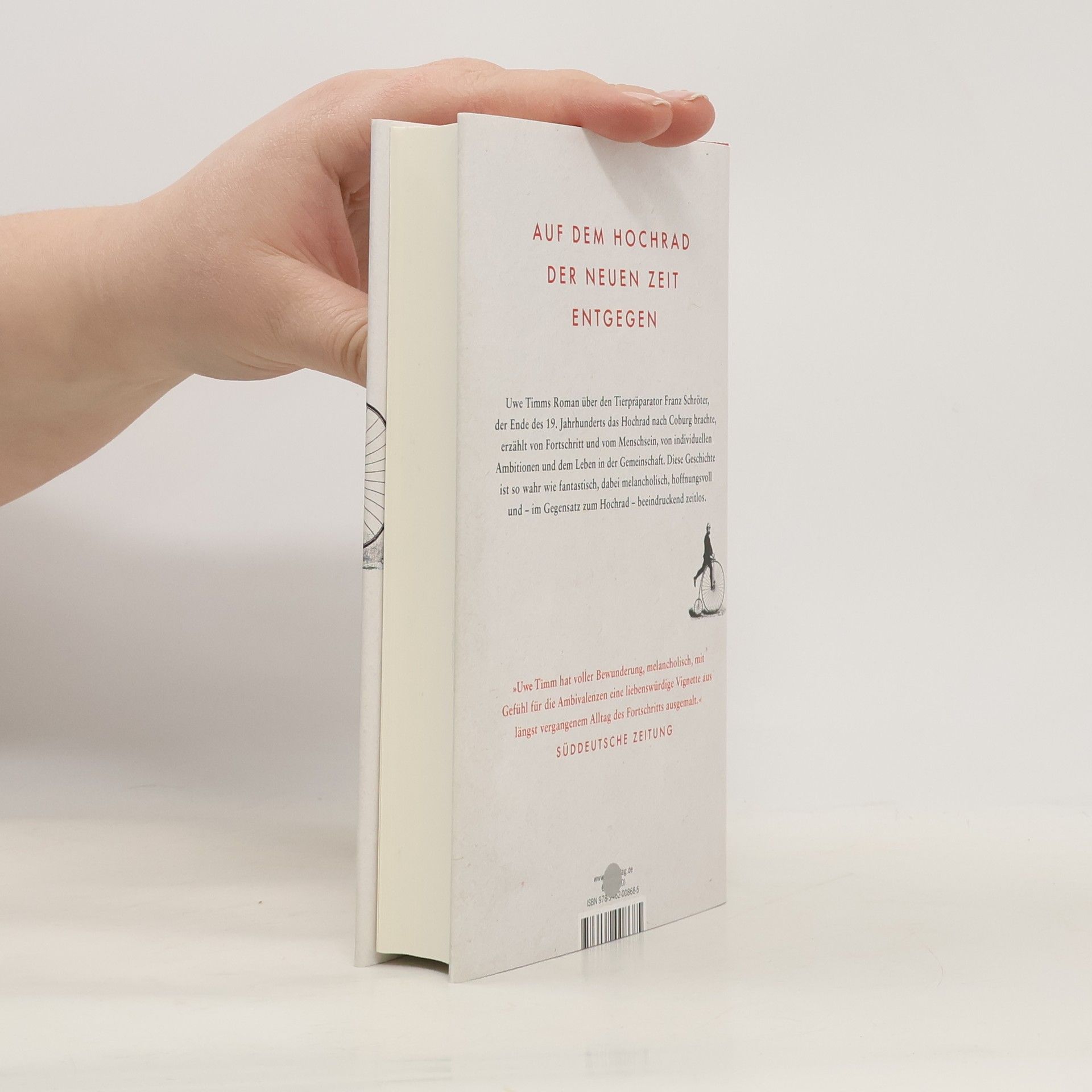Familienlegende mit wahrem Kern Coburg Ende des 19. Jahrhunderts: Ein Mann, der Tierpräparator Franz Schröter, fährt auf einem Hochrad durch die Straßen. Diese Pioniertat bringt die kleine Residenzstadt in Bewegung. Ungeheuerliches geschieht und erhitzt die Gemüter – Anna, die Frau des Rebellen, radelt im aufsehenerregenden syrischen Unterkleid (heute würde man vom Hosenrock sprechen) durch die Stadt, die Kopfstürze mehren sich, ein als Mann verkleidetes Freifräulein vom herzoglichen Hof derer von Sachsen-Coburg und Gotha sinkt bei ihren Fahrversuchen immer wieder in Schröters Arme. Und bald stehen sich Anhänger von Hochrad und Niederrad unversöhnlich gegenüber ... Uwe Timm erzählt eine ebenso wahre wie phantastische Geschichte aus der noch nicht allzu fernen Zeit der großen Erfindungen und des unbeirrten Fortschrittsglaubens.