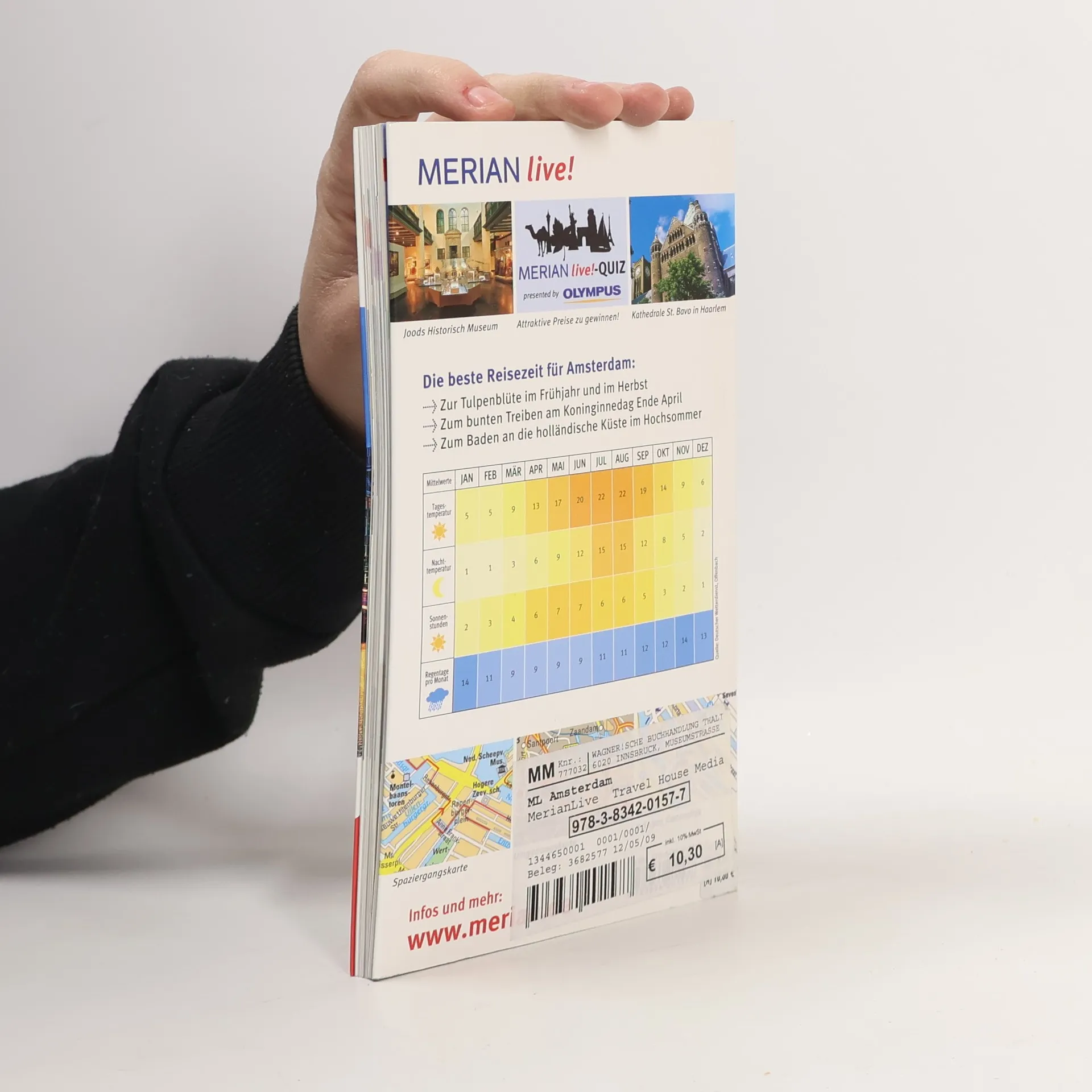 Mehrfach ausgezeichnet als bester Kompakt-Reiseführer: 1. Platz ITB BuchAward! + Jetzt neu mit herausnehmbarem Stadtplan zusätzlich zum Kartenatlas. + Extra: MERIAN-Quiz mit Gewinnspiel! +++ Eine Auswahl aus dem Inhalt: Sehenswertes: Begijnhof + Amsterdamse-School + Dam + De Waag/Nieuwmarkt + Grachten + Het Muziekgebouw aan t lj +++ Museen und Galerien: Anne Frank Huis + Joods Historisch Museum + Museum van Loon + Rijksmuseum + Amsterdam Historisch Museum +++ Die schönsten 3 schönsten Spaziergänge: Bummel durch Alt-Amsterdam + Grachtentour mit dem Museumsboot + Mit dem Fahrrad durch das alte Hafenviertel +++ Die 3 lohnendsten Ausflüge in die Umgebung: Haarlem - die Einlaufs- und Blumenstadt + Malerische Städtchen im Waterland + Freilichtmuseum Zaanse Schans +++ Ca. 60 Farbfotos, herausnehmbarer Stadtplan plus 8 Seiten Kartenatlas, 2 Übersichtskarten, 1 Stadtplan, 1 Detailplan, 1 Verkehrslinienplan, Sprachführer und Essdolmetscher, MERIAN-TopTen und MERIAN-Tipps.