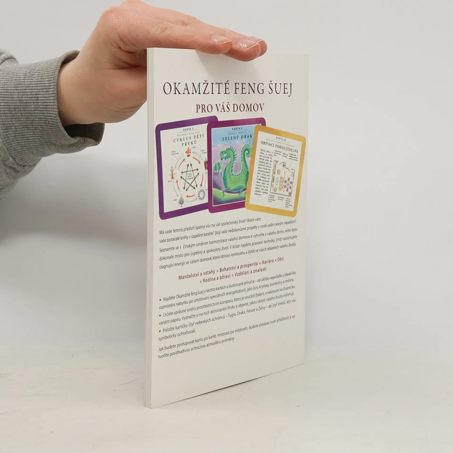 Vytvořte si díky této praktické sadě – kartu po kartě, místnost po místnosti – dokonalý životní prostor, který nastartuje energii vašeho domova, díky níž budete schopni přinést do svého domova klid, rovnováhu a harmonii tolik potřebnou uprostřed uspěchaného a vypjatého životního stylu dnešní doby.