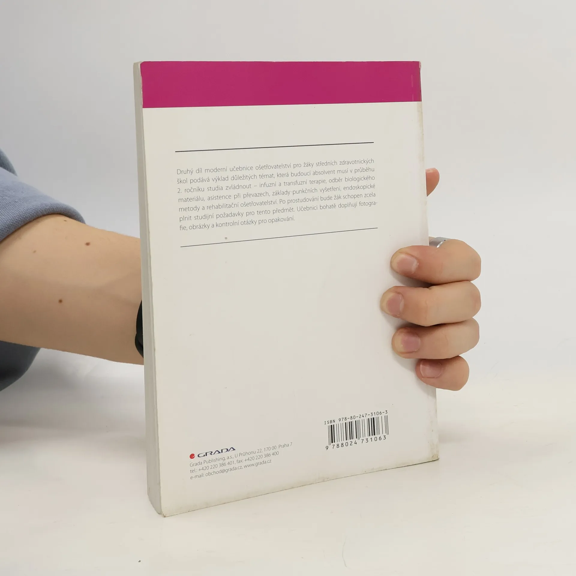 Druhý díl učebnice ošetřovatelství pro 2. ročníky splňuje požadavky žáků i vyučujících na středních zdravotnických školách. Jako jediná učebnice na trhu je připravena přímo pro žáky oborů na SZŠ. Učebnice je určena 2. ročníkům studia, navazuje na 1. díl pro 2. ročník a na úspěšnou učebnici ošetřovatelství pro 1. ročník. Zahrnuje náročnou látku se všemi tématy, která musí žák v průběhu 2. ročníku studia zvládnout. Po prostudování bude žák schopen zcela plnit studijní požadavky pro tento předmět. Učebnici bohatě doplňují fotografie a obrázky, kontrolní otázky pro opakování a výčet kompetencí pro absolventy středních zdravotnických škol. Tak jako učebnici pro 1. ročník je i tato publikace doplněna další učební pomůckou - pracovními sešity, které slouží k procvičení a upevnění znalostí získaných v obou dílech učebnic pro 2. ročník.