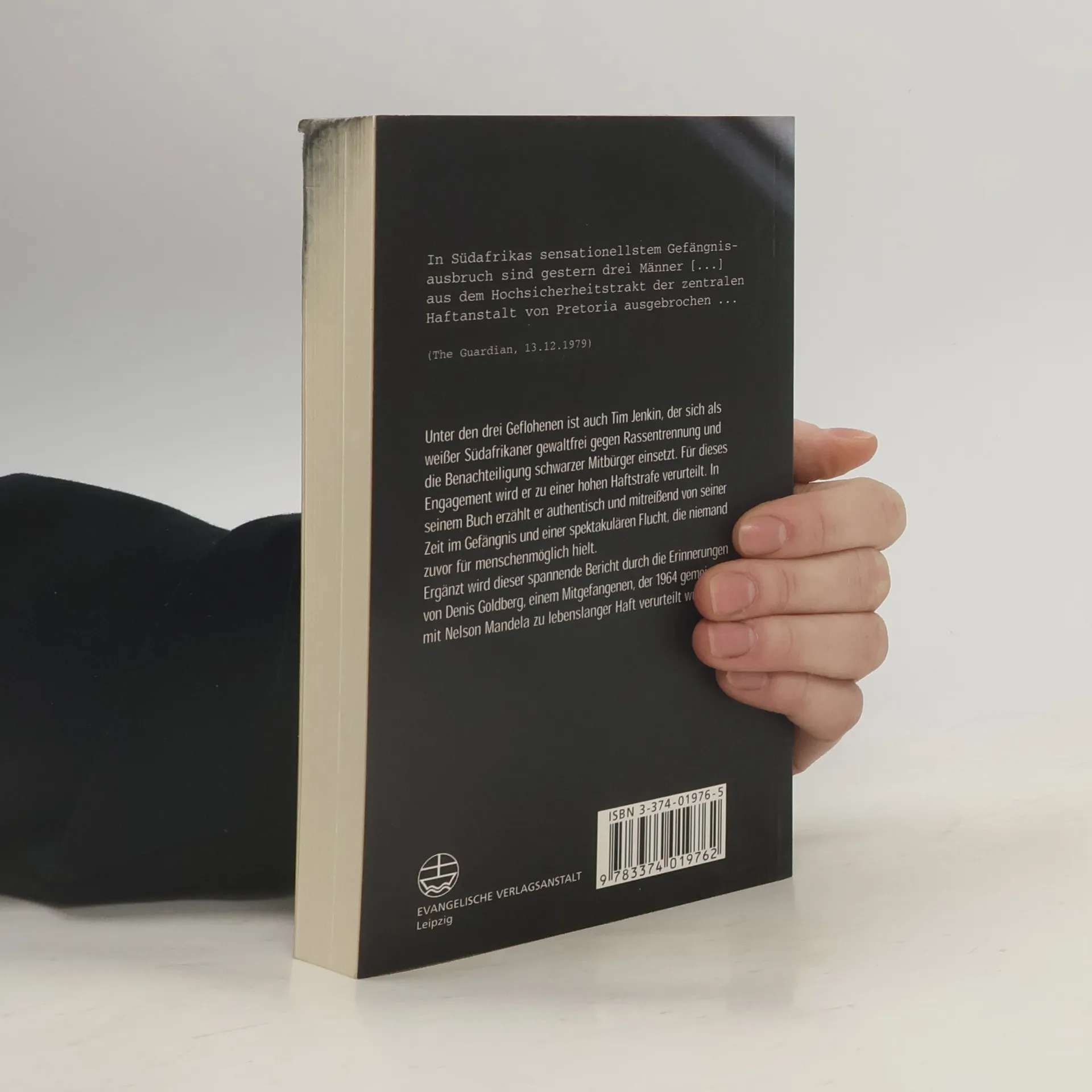 „In Südafrikas sensationellstem Gefängnisausbruch sind gestern drei Männer, unter dem Anti-Terrorismus-Gesetz zu langjährigen Freiheitsstrafen verurteilt, aus dem Hochsicherheitstrakt der zentralen Haftanstalt von Pretoria entflohen.“. Diese Aufsehen erregende Nachricht vom 13. Dezember 1979 galt dem ANC-Kämpfer Tim Jenkin und seinen zwei Mitgefangenen, denen das scheinbar Unmögliche gelungen war. Tim, der weiße Südafrikaner, hatte sich für die Gleichberechtigung aller Menschen eingesetzt und, wie Nelson Mandela, dieses Engagement teuer bezahlt: das Urteil für ihn lautete „zwölf Jahre Haft“. Spannend, authentisch und einfühlsam beschreibt er in seinem Buch die damaligen Ereignisse, seine Aktivitäten im verbotenen ANC, seine Festnahme, Gefängniszeit und die spektakuläre Flucht aus dem Hochsicherheitstrakt. Ergänzt wird Jenkins Bericht durch Denis Goldberg, einen Mitgefangenen, der 1963 im berühmten Rivonia-Prozess gemeinsam mit Nelson Mandela zu lebenslanger Haft verurteilt wurde.