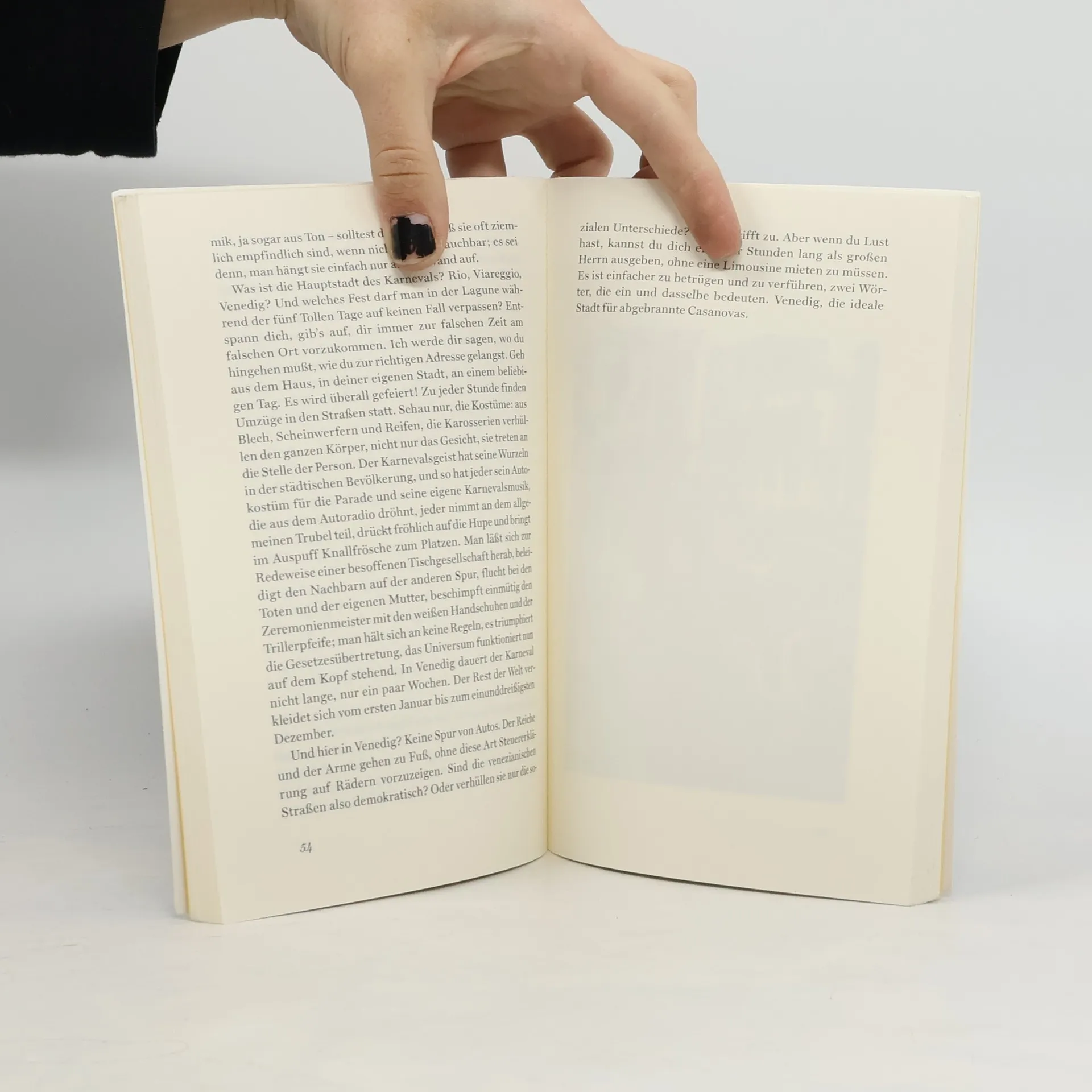 Dass Venedig die Form eines Fisches hat, sieht jeder, der auf eine Landkarte schaut. Tiziano Scarpa lädt uns ein, diesen Wunderfisch mit allen Sinnen zu entdecken – deshalb schreibt er nicht über Venedig, sondern darüber was mit uns in Venedig passiert. Die Kapitel lauten: Füße, Beine, Herz, Gesicht, Ohren, Mund, Nase, Augen. Wir erfahren, warum man sich in Venedig unbedingt verirren sollte, weshalb die Stadt als Kulisse für Liebeserklärungen ungeeignet ist und wieso Venedigs Schönheit hochgradig gesundheitsgefährdend ist. Scarpa wirft viel vom Bildungsballast, der auf Venedig lastet, ins Meer und sorgt dafür, dass man über diesen wunderlichen Venedig-Fisch auf ganz neue Art ins Staunen gerät.