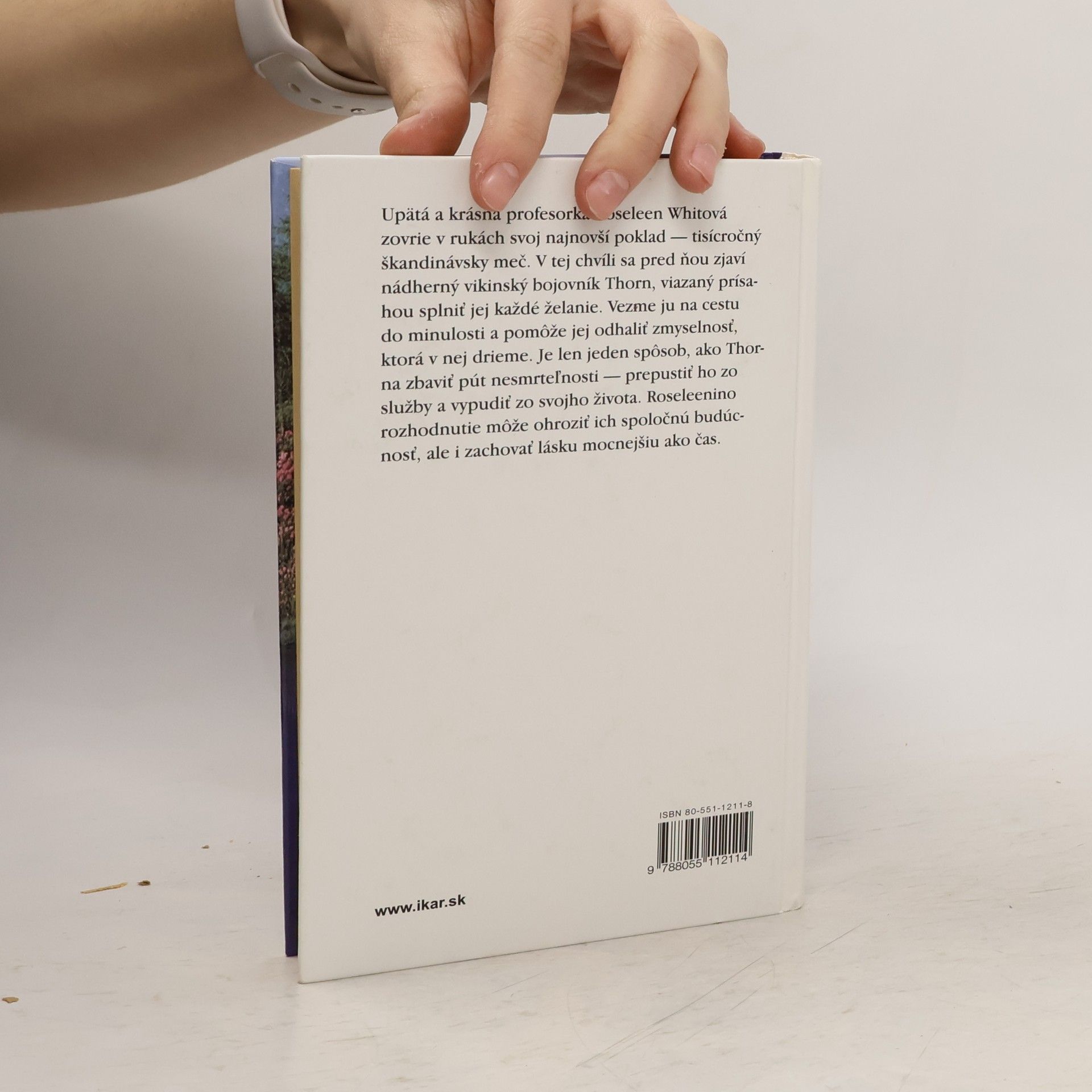 Upätá a krásna profesorka Roseleen Whitová zovrie v rukách svoj najnovší poklad – tisícročný škandinávsky meč. V tej chvíli sa pred ňou zjaví nádherný vikingský bojovník Thorn, viazaný prísahou splniť jej každé želanie. Vezme ju na cestu do minulosti a pomôže jej odhaliť zmyselnosť, ktorá v nej drieme. Je len jeden spôsob, ako Thorna zbaviť pút nesmrteľnosti – prepustiť ho zo služby a vypudiť zo svojho života. Roseleenino rozhodnutie môže ohroziť ich spoločnú budúcnosť, ale i zachovať lásku mocnejšiu ako čas.