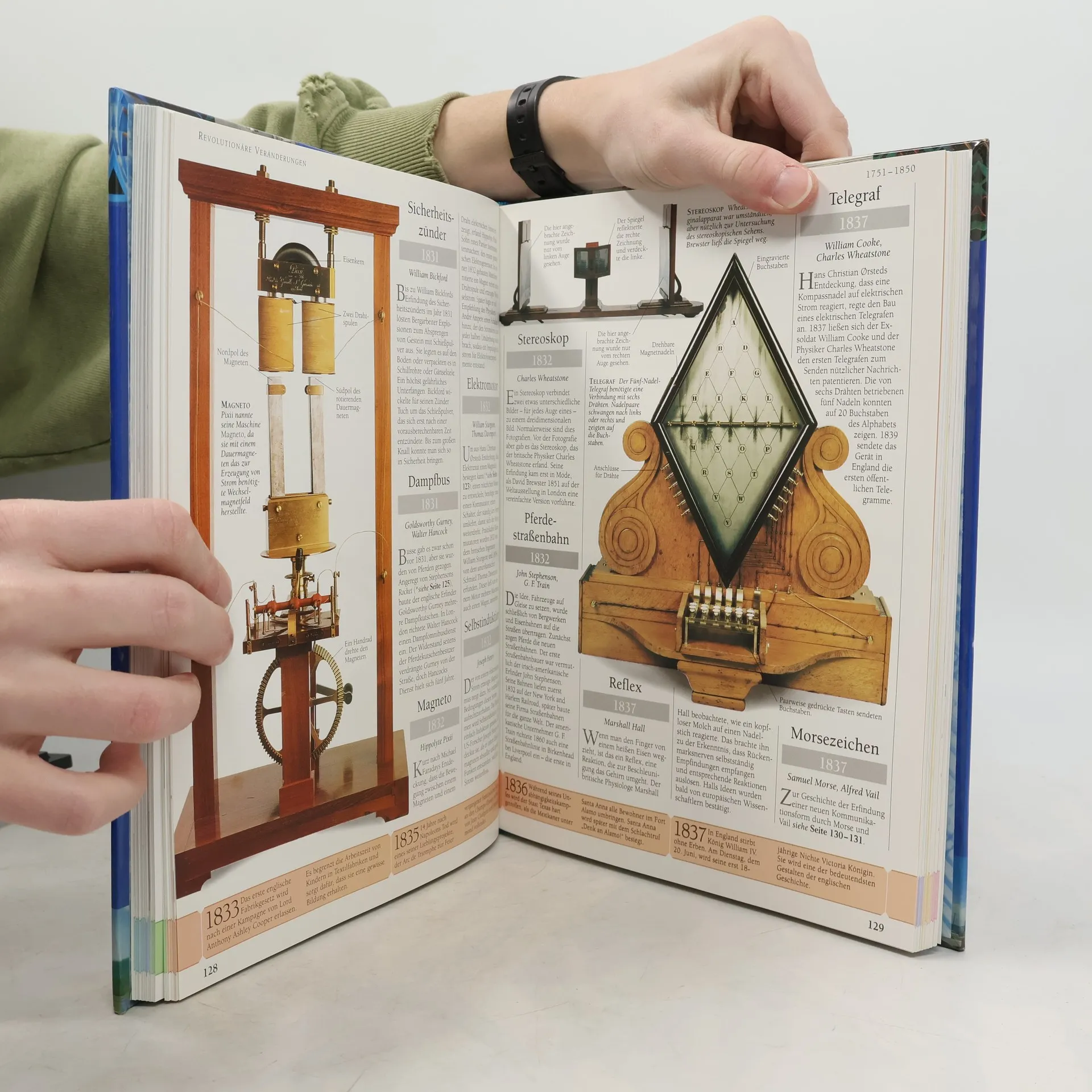 Flugzeuge, Telefon, Uhren, Rad und Feuer: All diese Dinge, die uns heute so selbstverständlich erscheinen, mussten irgendwann einmal er- oder gefunden werden. Wann wurden diese Dinge erfunden? Und welche Bedeutung hatte die Erfindung zu ihrer Zeit? Zahlreiche Fragen - die Kindern ja nie ausgehen - werden in diesem chronologisch gegliederten Nachschlagewerk beantwortet. Die Unterteilung in 7 Zeitabschnitte, von der Steinzeit bis in die Moderne, sowie die mitlaufende Zeitleiste ermöglichen eine sofortige Orientierung. Ein übersichtlich und reichlich bebildertes Buch zum Schmökern und Nachschlagen! Ab 8 Jahren