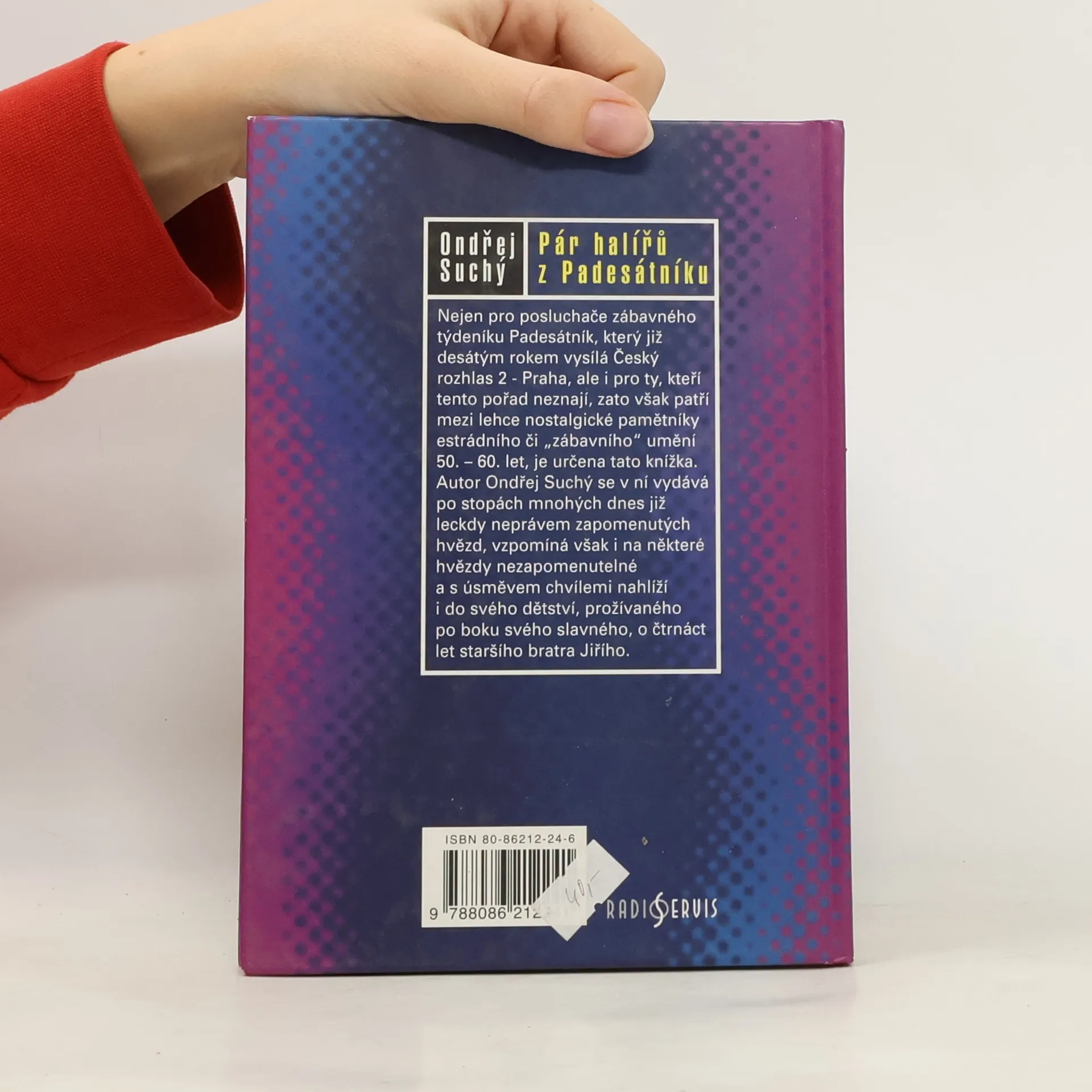 Kniha vznikla na základě rozhlasového pořadu Padesátník vysílaného na stanici Český rozhlas 2 - Praha. Přepis vybraných portrétů z rozhlasového pořadu Padesátník, jehož autorem a moderátorem je Ondřej Suchý. Vzpomínky na protagonisty české divadelní a hudební scény let 50. oživují podobu známých i méně známých herců, zpěváků, imitátorů a klaunů. Příkladem za mnohé jiné je populární "smutný muž" Jaroslav Válek, který stal symbolem doby, v níž se tato postava zrodila. Reminiscence na minulost, jak je shromáždil Ondřej Suchý, jsou jistě potřebné a někdy i objevné.