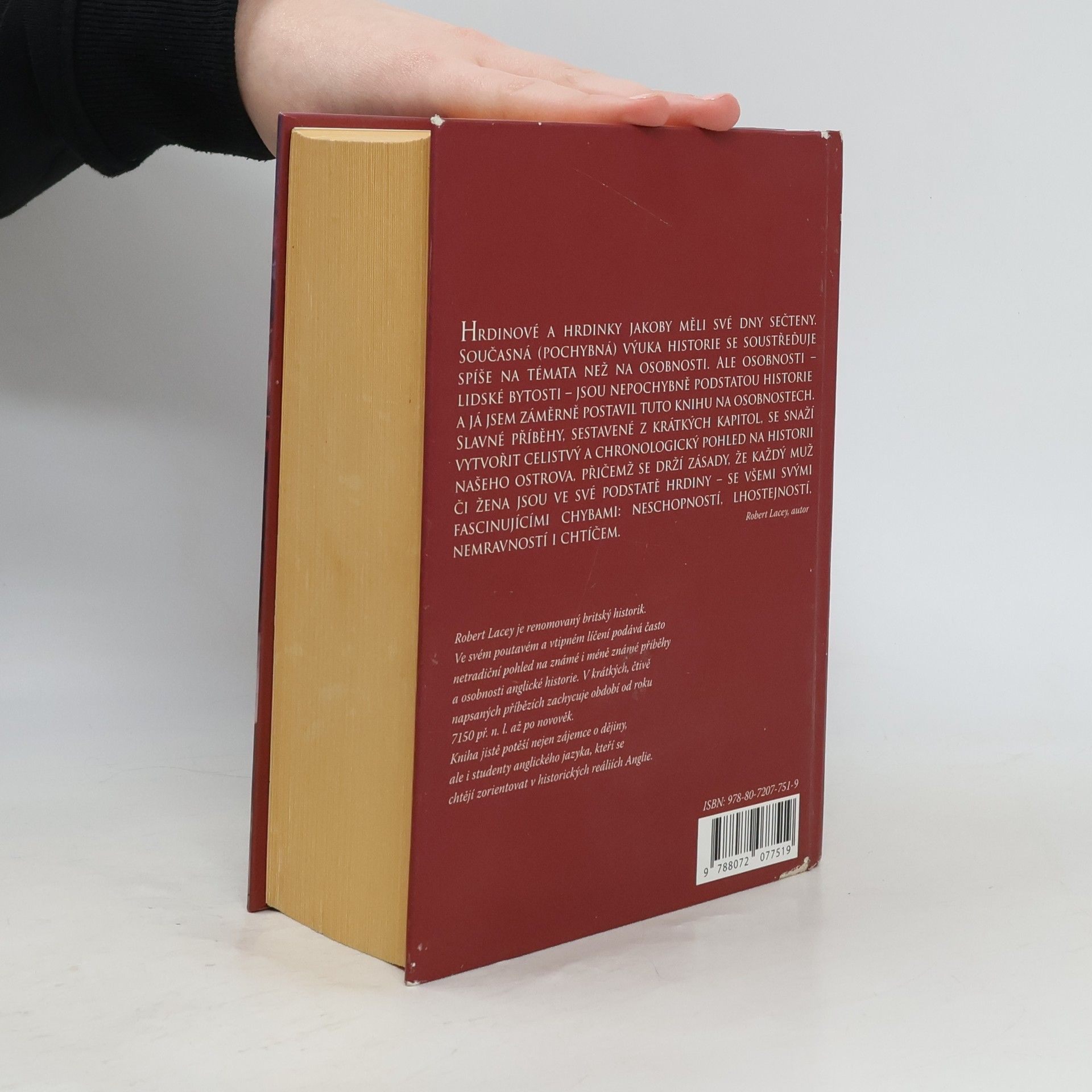 Autor knihy Robert Lacey je renomovaný britský historik. Ve svém poutavém a vtipném líčení podává často netradiční pohled na známé i méně známé příběhy a osobnosti anglické historie. V krátkých, čtivě napsaných příbězích zachycuje období od roku 7150 př. n. l. až po novověk. Kniha jistě potěší nejen zájemce o dějiny, ale i studenty anglického jazyka, kteří se chtějí zorientovat v historických reáliích Anglie.