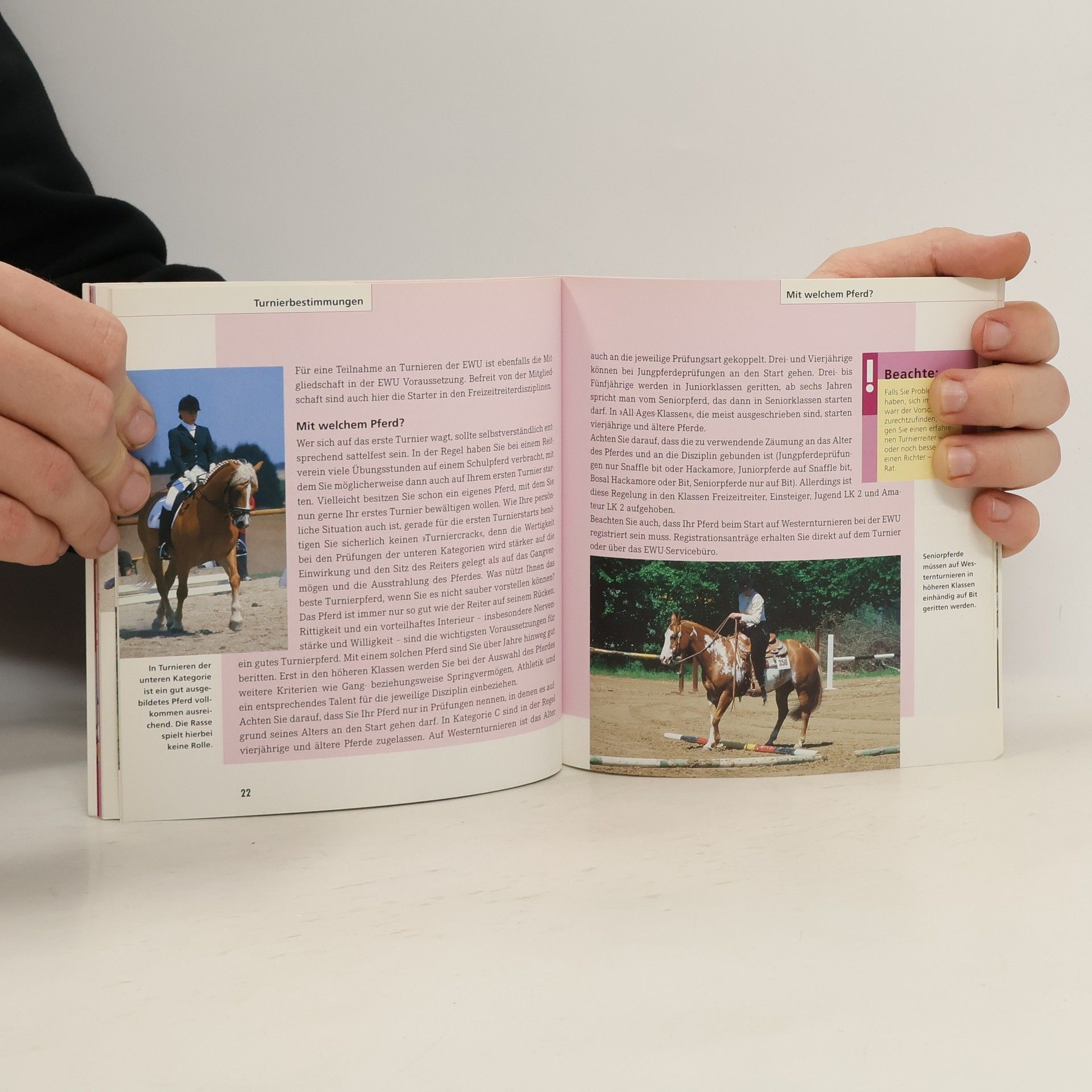 Das Training von Pferd und Reiter im Hinblick auf die Turnierteilnahme, Turniervorbereitungen, Verhalten beim Turnier.