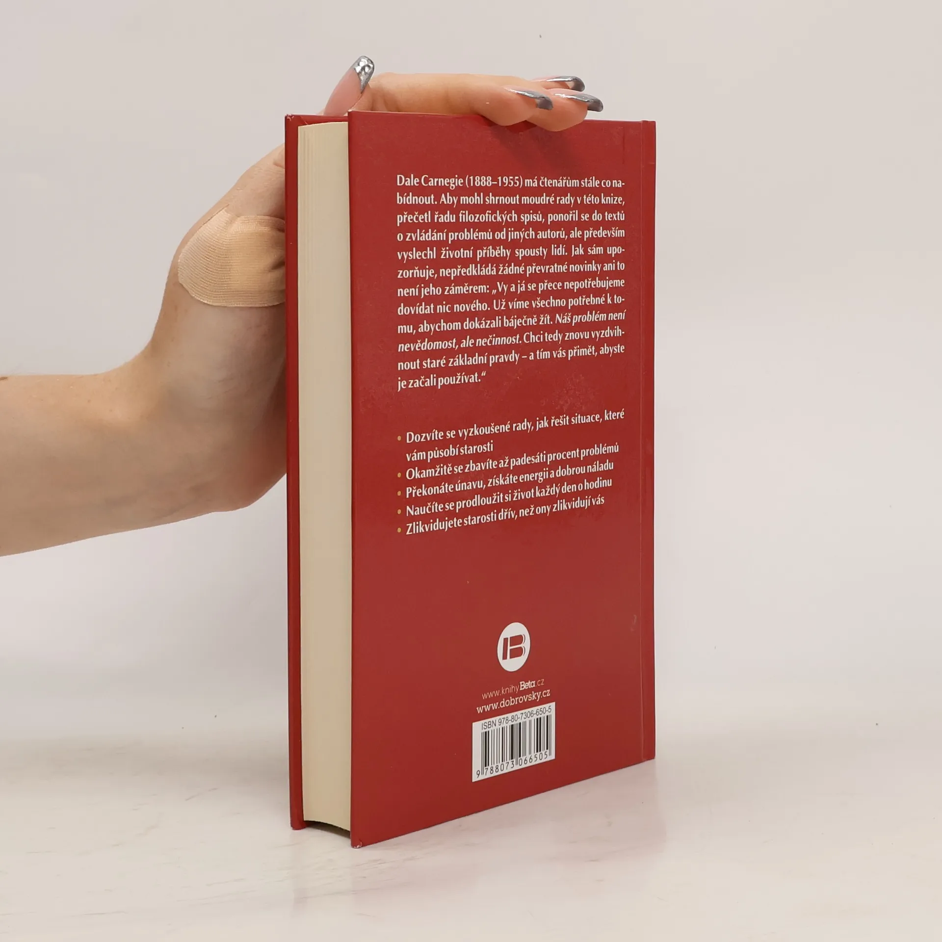 Dale Carnegie, slavný učitel osobního rozvoje z první poloviny dvacátého století, má čtenářům stále co nabídnout. Aby mohl shrnout moudré rady v této knize, přečetl řadu filozofických spisů, ponořil se do textů o zvládání problémů od jiných autorů, ale především vyslechl životní příběhy spousty lidí. Jak sám upozorňuje, nepředkládá žádné převratné novinky ani to není jeho záměrem: „Vy a já se přece nepotřebujeme dovídat nic nového. Už víme všechno potřebné k tomu, abychom dokázali báječně žít. Náš problém není nevědomost, ale nečinnost. Chci tedy znovu vyzdvihnout staré základní pravdy – a tím vás přimět, abyste je začali používat.“