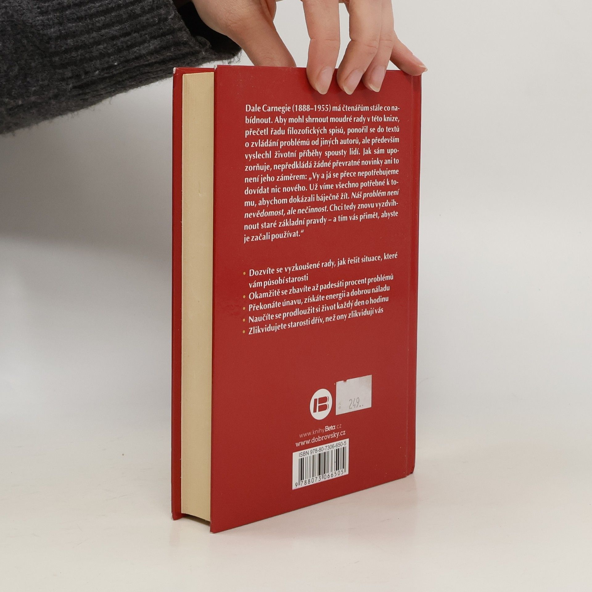 Dale Carnegie, slavný učitel osobního rozvoje z první poloviny dvacátého století, má čtenářům stále co nabídnout. Aby mohl shrnout moudré rady v této knize, přečetl řadu filozofických spisů, ponořil se do textů o zvládání problémů od jiných autorů, ale především vyslechl životní příběhy spousty lidí. Jak sám upozorňuje, nepředkládá žádné převratné novinky ani to není jeho záměrem: „Vy a já se přece nepotřebujeme dovídat nic nového. Už víme všechno potřebné k tomu, abychom dokázali báječně žít. Náš problém není nevědomost, ale nečinnost. Chci tedy znovu vyzdvihnout staré základní pravdy – a tím vás přimět, abyste je začali používat.“