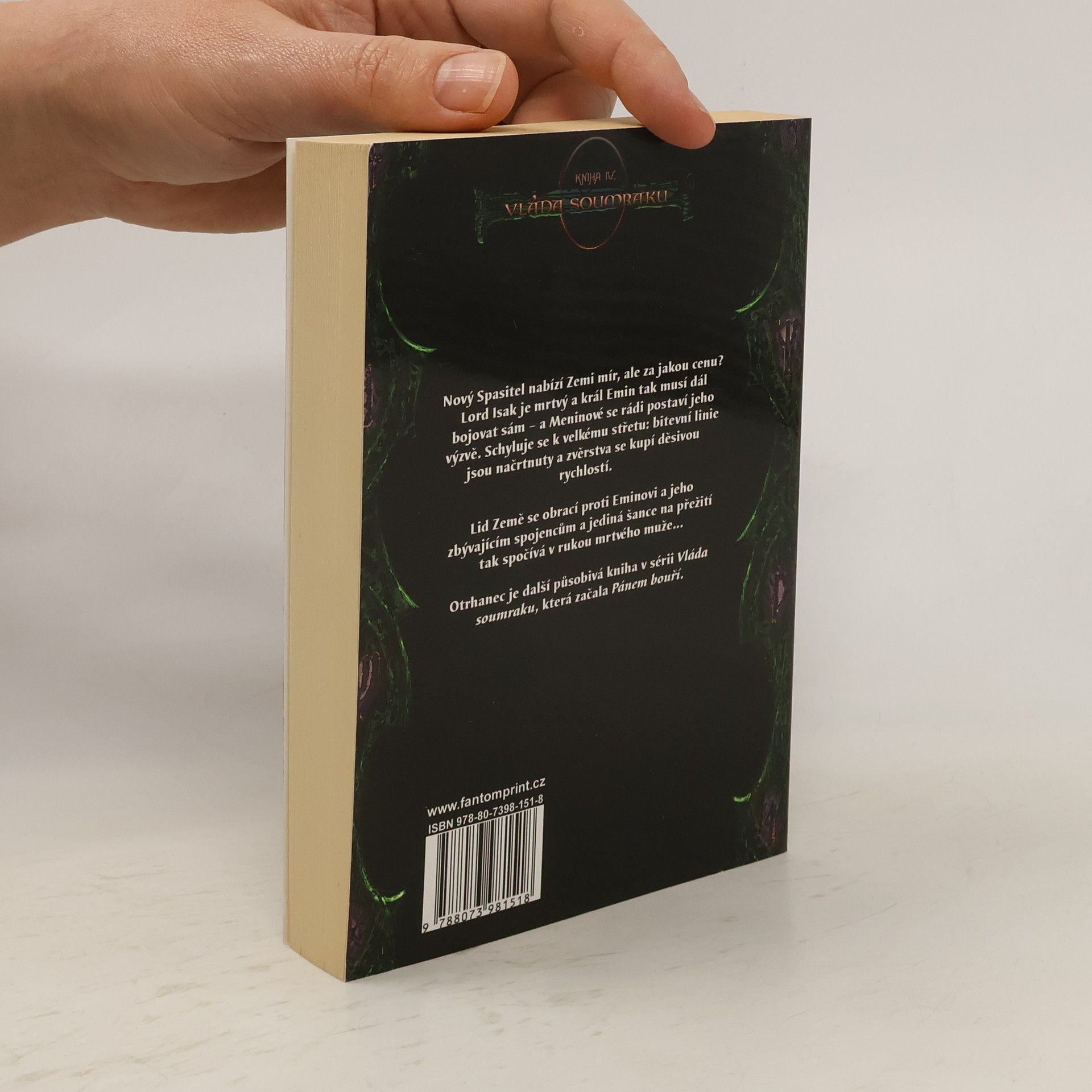 Čtvrtá kniha série Vláda soumraku. Nový Spasitel nabízí Zemi mír, ale za jakou cenu? Lord Isak je mrtvý a král Emin tak musí dál bojovat sám - a Meninové se rádi postaví jeho výzvě. Schyluje se k velkému střetu: bitevní linie jsou načrtnuty a zvěrstva se kupí děsivou rychlostí. Lid Země se obrací proti Eminovi a jeho zbývajícím spojencům a jediná šance na přežití tak spočívá v rukách mrtvého muže.