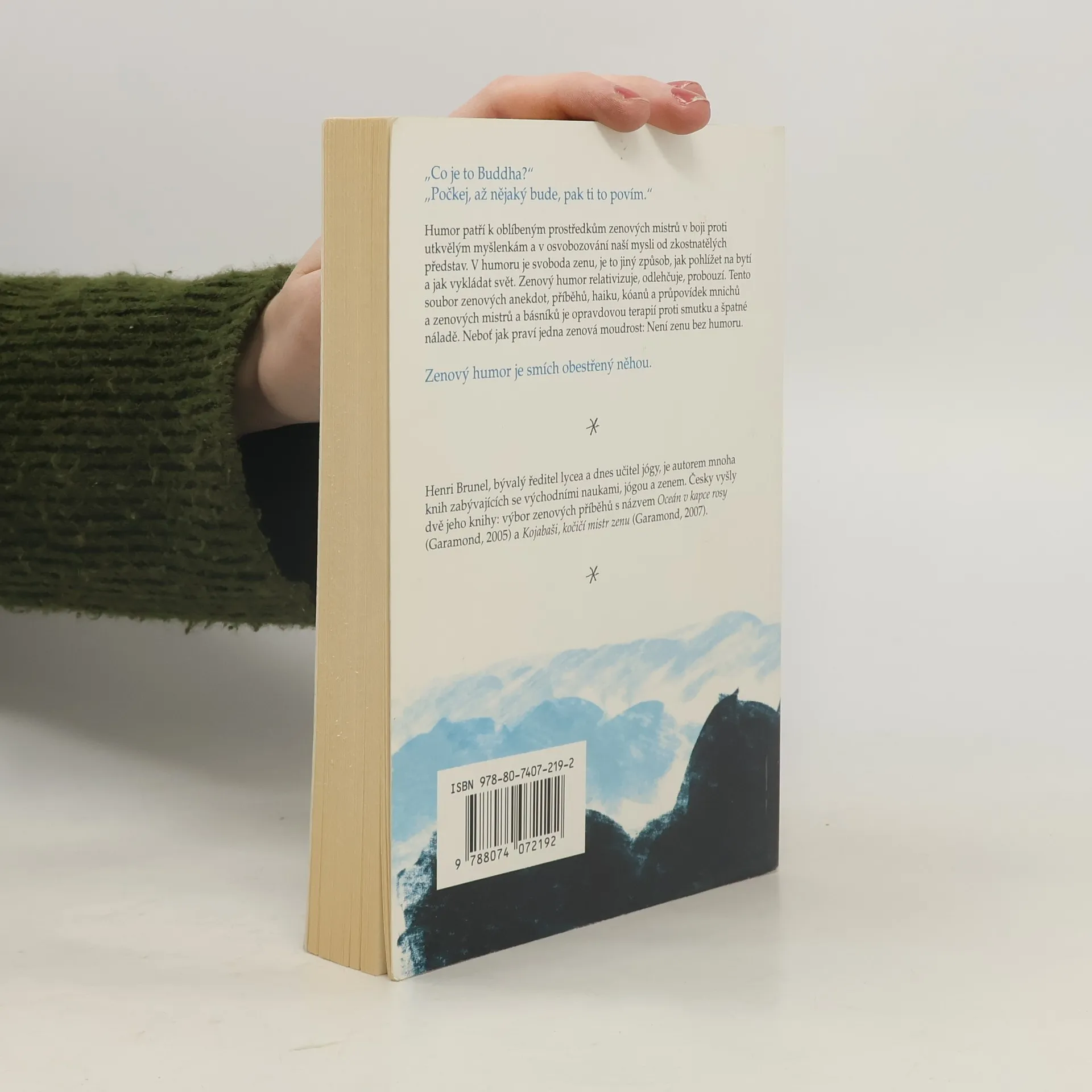 „Co je to Buddha?“ „Počkej, až nějaký bude, pak ti to povím.“ Humor patří k oblíbeným prostředkům zenových mistrů v boji proti utkvělým myšlenkám a v osvobozování naší mysli od zkostnatělých představ. V humoru je svoboda zenu, je to jiný způsob, jak pohlížet na bytí a jak vykládat svět. Zenový humor relativizuje, odlehčuje, probouzí. Tento soubor zenových anekdot, příběhů, haiku, kóanů a průpovídek mnichů a zenových mistrů a básníků je opravdovou terapií proti smutku a špatné náladě. Neboť jak praví jedna zenová moudrost: Není zenu bez humoru.