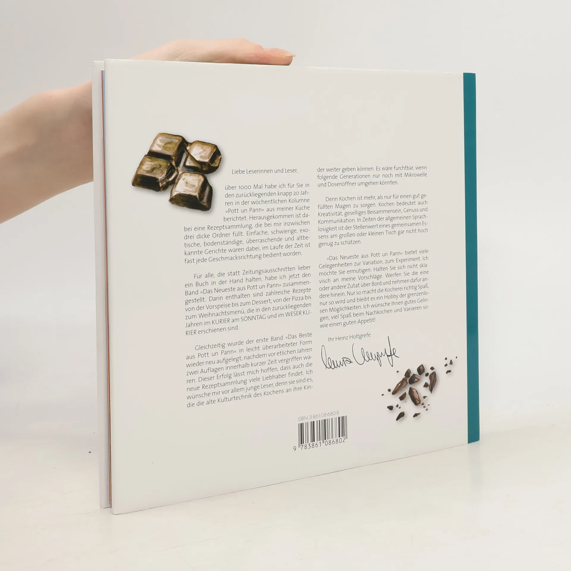 'Pott un Pann' - so lautet der Titel einer Kolumne im 'Weser Kurier', in der Heinz Holtgrefe seit 1983 seine beliebten Kochrezepte veröffentlicht. Mal einfach, mal mit viel Aufwand, mal exotisch, mal urdeutsch - aber immer mit Sorgfalt und mit möglichst frischen Zutaten der Saison. So sind im Laufe der letzten zwanzig Jahre über 1000 Rezepte veröffentlicht worden und an neuen Themen und Ideen mangelt es nicht. Als vor rund zehn Jahren die erste Ausgabe von 'Das Beste aus Pott un Pann' auf den Markt kam, waren alle Beteiligten vom Erfolg überrascht: inenrhalb kürzester Zeit musste die Rezeptsammlung in einer zweiten Auflage gedruckt werden. Nun erscheint auch der zweite Band der beliebten Kochrezepte mit neuen Ideen für das Kochen am heimischen Herd. Anlass für den Verlag, auch Band 1 in modernisiertem Layout erneut auf den Markt zu bringen. Mit 'Das Beste aus Pott un Pann' und 'Das Neueste aus Pott un Pann' legt die Edition Temmen damit zwei moderne Kochbücher vor, die traditionelle und zeitgenössische Rezepte vorstellen und auch jungen Leuten Lust auf kulinarische Ausflüge macht. Von Morchelsuppe über Ravioli oder Carpaccio, von Kohlrabi bis hin zu in riesling gedünstete Äpfel oder Masala-geschärftes Gulasch - für jeden Geschmack ist etwas dabei. Alle Rezepte sind übersichtlich beschrieben und leicht nachzukochen.