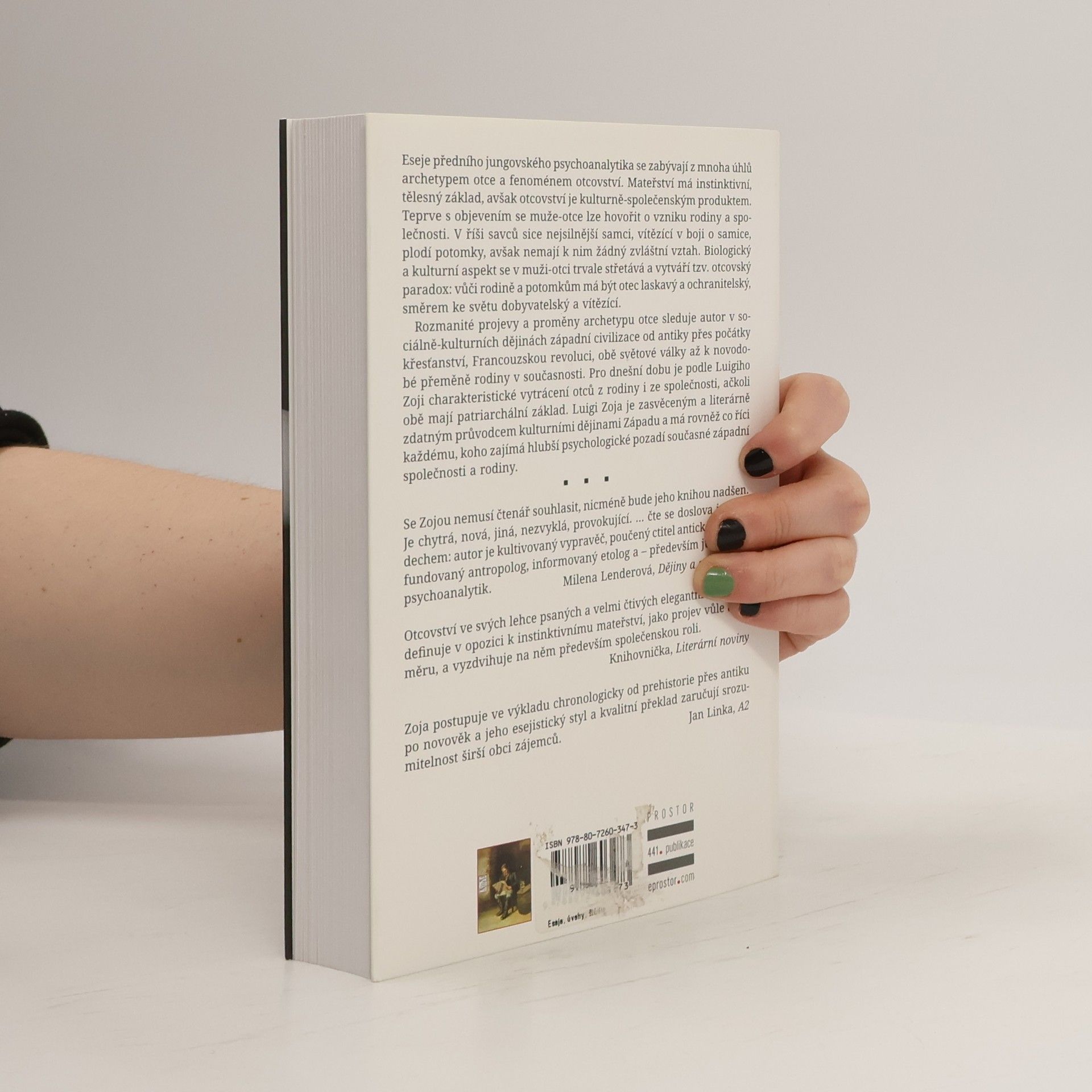 Eseje předního jungovského psychoanalytika se zabývají z mnoha úhlů archetypem otce a fenoménem otcovství. Mateřství má instinktivní, tělesný základ, avšak otcovství je kulturně-společenským produktem. Teprve s objevením se muže-otce lze hovořit o vzniku rodiny a společnosti. V říši savců sice nejsilnější samci, vítězící v boji o samice, plodí potomky, avšak nemají k nim žádný zvláštní vztah. Biologický a kulturní aspekt se v muži-otci trvale střetává a vytváří tzv. otcovský paradox: vůči rodině a potomkům má být otec laskavý a ochranitelský, směrem ke světu dobyvatelský a vítězící. Rozmanité projevy a proměny archetypu otce sleduje autor v sociálně-kulturních dějinách západní civilizace od antiky přes počátky křesťanství, Francouzskou revoluci, obě světové války až k novodobé přeměně rodiny v současnosti. Pro dnešní dobu je podle Luigiho Zoji charakteristické vytrácení otců z rodiny i ze společnosti, ačkoli obě mají patriarchální základ. Luigi Zoja je zasvěceným a literárně zdatným průvodcem kulturními dějinami Západu a má rovněž co říci každému, koho zajímá hlubší psychologické pozadí současné západní společnosti a rodiny.