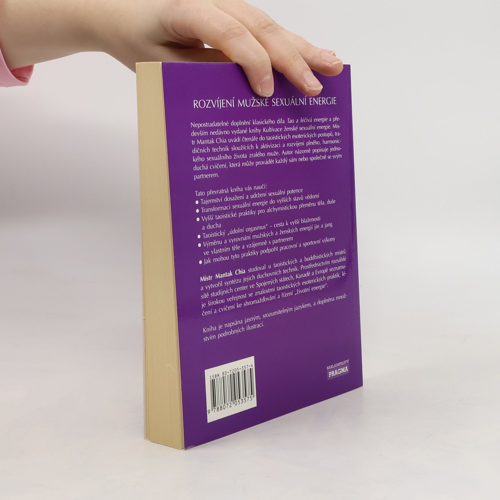 Nepostradatelné doplnění klasického díla Tao a léčivá energie a především nedávno vydané knihy Kultivace ženské sexuální energie. Mistr Mantak Chia uvádí čtenáře do taoistických esoterických postupů, tradičních technik sloužících k aktivizaci a rozvíjení plného, harmonického sexuálního života zralého muže. Autor názorně popisuje jednoduchá cvičení, která může provádět každý sám nebo společně se svým partnerem. Tato převratná kniha vás naučí: • Tajemství dosažení a udržení sexuální potence • Transformaci sexuální energie do vyšších stavů vědomí • Vyšší taoistické praktiky pro alchymistickou přeměnu těla, duše a ducha • Taoistický „údolní orgasmus" - cesta k vyšší blaženosti • Výměnu a vyrovnání mužských a ženských energií jin a jang ve vlastním těle a vzájemně s partnerem • Jak mohou tyto praktiky podpořit pracovní a sportovní výkony Mistr Mantak Chia studoval u taoistických a buddhistických mistrů a vytvořil syntézu jejich duchovních technik. Prostřednictvím rozsáhlé sítě studijních center ve Spojených státech, Kanadě a Evropě seznamuje širokou veřejnost se znalostmi taoistických esoterických praktik, léčení a cvičení ke shromažďování a řízení „životní energie". Kniha je napsána jasným, srozumitelným jazykem, a doplněna množstvím podrobných ilustrací.
