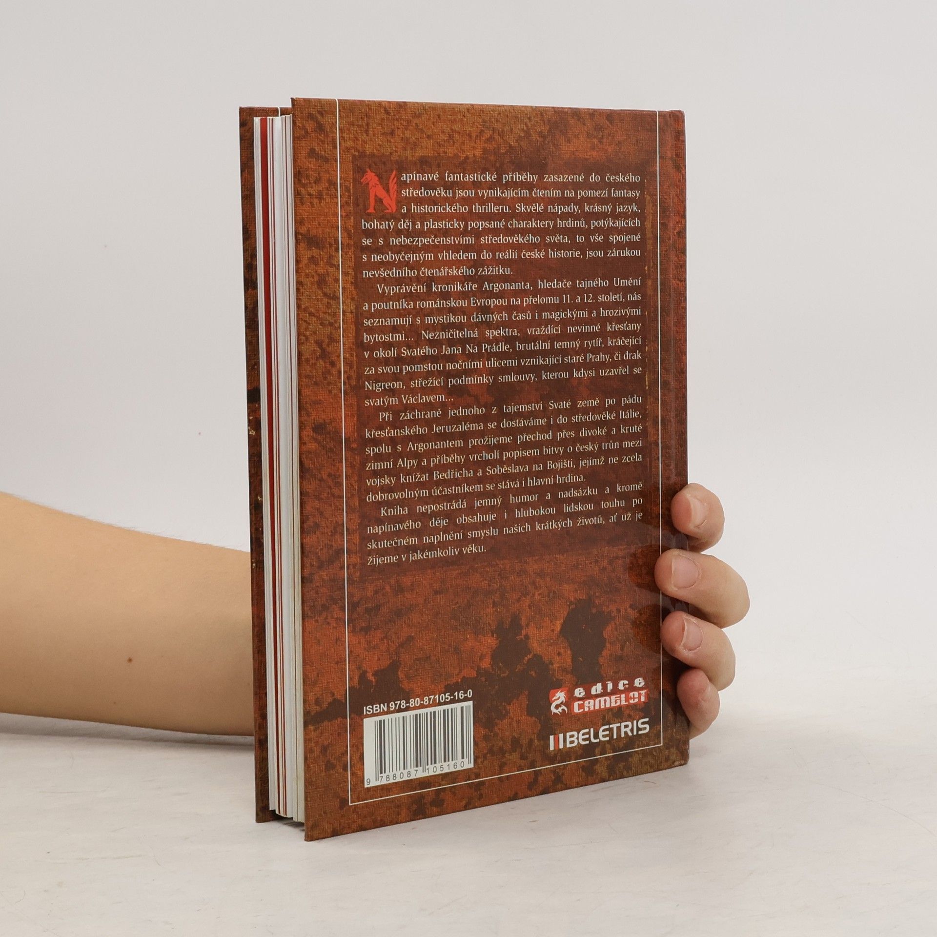 Napínavé fantastické příběhy zasazené do českého středověku jsou vynikajícím čtením na pomezí fantasy a historického thrilleru. Skvělé nápady, krásný jazyk, bohatý děj a plasticky popsané charaktery hrdinů, potýkajících se s nebezpečenstvími středověkého světa, to vše spojené s neobyčejným vhledem do reálií české historie, jsou zárukou nevšedního čtenářského zážitku. Vyprávění kronikáře Argonanta, hledače tajného Umění a poutníka románskou Evropou na přelomu 11. a 12. století, nás seznamují s mystikou dávných časů i magickými a hrozivými bytostmi… Nezničitelná spektra, vraždící nevinné křesťany v okolí Svatého Jana Na Prádle, brutální temný rytíř, kráčející za svou pomstou nočními ulicemi vznikající staré Prahy, či drak Nigreon, střežící podmínky smlouvy, kterou kdysi uzavřel se svatým Václavem … Při záchraně jednoho z tajemství Svaté země po pádu křesťanského Jeruzaléma se dostáváme i do středověké Itálie, spolu s Argonantem prožijeme přechod přes divoké a kruté zimní Alpy a příběhy vrcholí popisem bitvy o český trůn mezi vojsky knížat Bedřicha a Soběslava na Bojišti, jejímž ne zcela dobrovolným účastníkem se stává i hlavní hrdina. Kniha nepostrádá jemný humor a nadsázku a kromě napínavého děje obsahuje i hlubokou lidskou touhu po skutečném naplnění smyslu našich krátkých životů, ať už je žijeme v jakémkoliv věku.