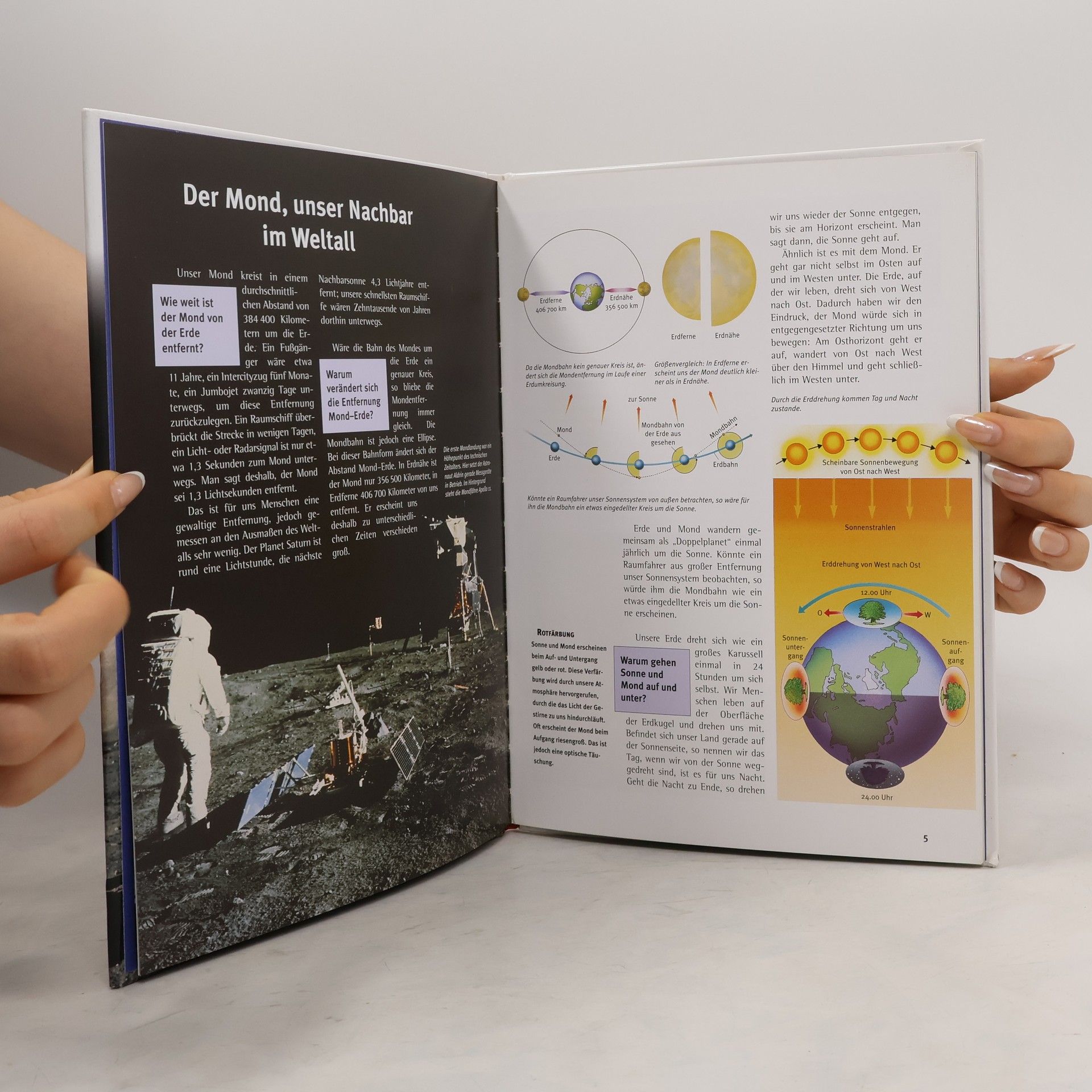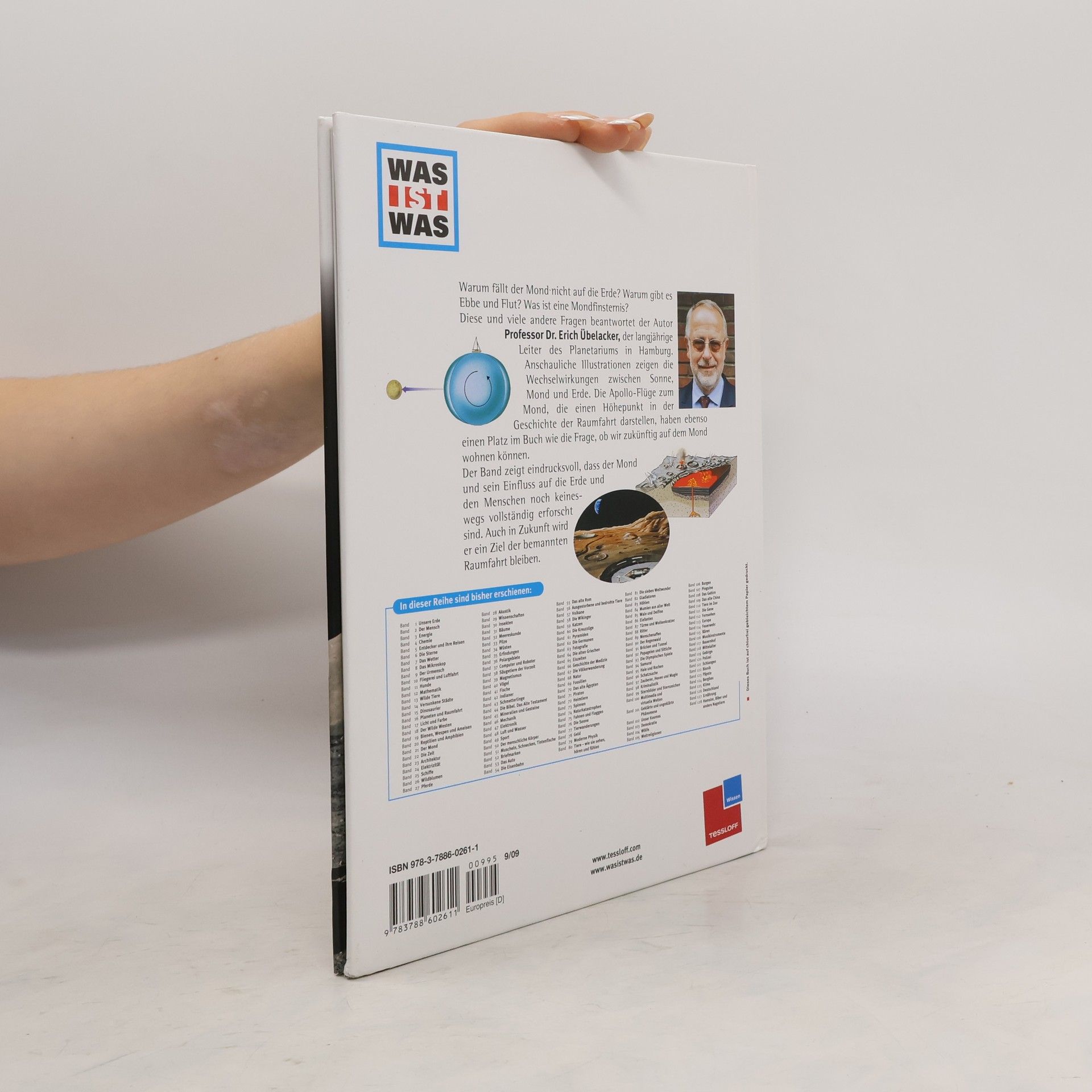Warum fällt der Mond nicht auf die Erde? Warum gibt es Ebbe und Flut? Was ist eine Mondfinsternis? Diese und viele andere Fragen beantwortet der Autor Professor Dr. Erich Übelacker, der langjährige Leiter des Planetariums in Hamburg. Anschauliche Illustrationen zeigen die Wechselwirkungen zwischen Sonne, Mond und Erde. Die Apollo-Flüge zum Mond, die einen Höhepunkt in der Geschichte der Raumfahrt darstellen, haben ebenso einen Platz im Buch wie die Frage, ob wir zukünftig auf dem Mond wohnen können. Der Band zeigt eindrucksvoll, dass der Mond und sein Einfluss auf die Erde und den Menschen noch keineswegs vollständig erforscht sind. Auch in Zukunft wird er ein Ziel der bemannten Raumfahrt bleiben.
