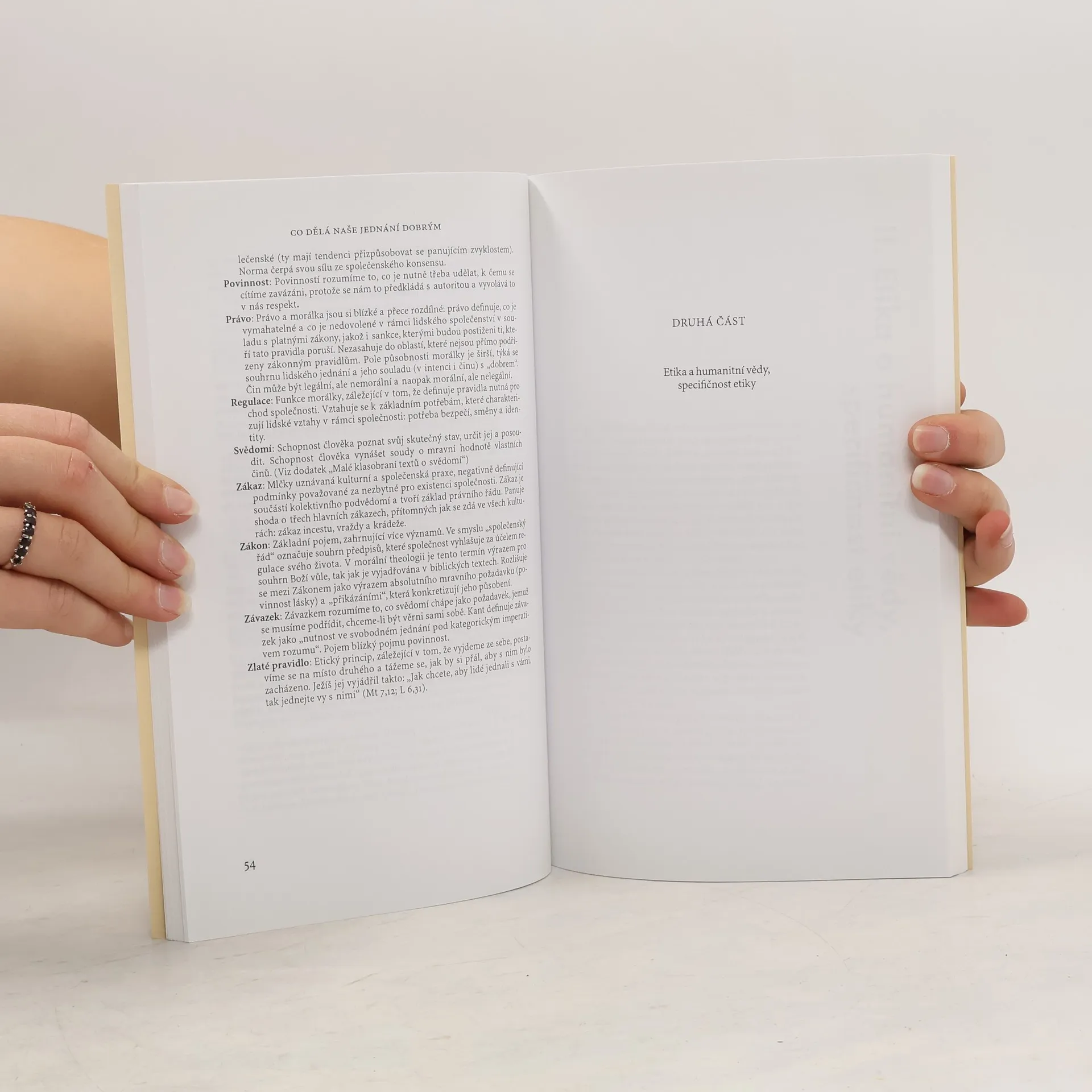 Uvedení do etiky V posledních desetiletích desetiletích natolik v Evropě rostl zájem o etiku, až se tu a tam dalo hovořit o módě. Zvýšený zájem o etiku je přitom výsledkem určitého zmatku a současně určitých očekávání. Zmatek nastal rychlým chátráním dosud uznávaných instancí. Rodina, církve, školy ani politické ideologie nejsou schopny prosadit ve společnosti svůj hodnotový žebříček (pokud jsou vůbec schopny jej jasně vyjádřit). Někdejší norma se rozdrolila, avšak zájem o etiku a morálku tím neklesl - naopak přibylo mnoho rozličných pokusů o stanovení normy nové. Hodnoty ve společnosti nějak vnímáme a ctíme, ale těžko říct, jak je seřadit. Člověk by se měl v tomhle supermarketu s morálkami zastavit a dobře rozmýšlet, než po něčem sáhne - vždyť cílem etické reflexe je správné rozhodování. Co činí naše jednání dobrým? Na tuto jednoduchou otázku není jednoduchá odpověď. V této knize nehledejte výčet pravidel a pouček (stanovených některou z morálek nabízených v supermarketu) – spíš úplný začátek a podněty pro to, jak se v tom sami vyznat. Vydání první