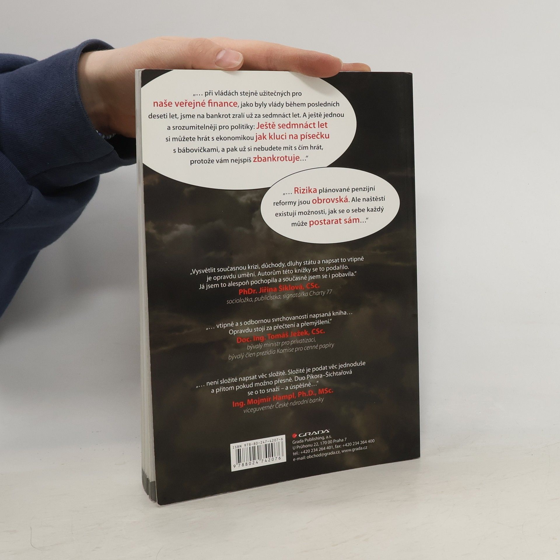 Co když je všechno jinak, než se na první pohled zdá? Ve společnosti roste napětí. Nepokoje se šíří Evropou. Jedna krize střídá druhou. Možná se blíží kolaps eurozóny. Jak to skončí? Vstupujeme do nové éry? Dá se snad v takové chvíli spoléhat na to, že se o nás postará stát? Myslíte na stáří, ale nevíte, jak v tak zvláštní době investovat bezpečně? Známí ekonomové Vladimír Pikora a Markéta Šichtařová na tyto otázky odpovídají způsobem srozumitelným každému laikovi. Boří jeden mýtus za druhým, odmaskovávají nekompetentní politiky, odhalují, co nás čeká. Nabízejí řešení, jak se o sebe a svůj důchod postarat a jak investovat bezpečně. Ale pokud čekáte nudu a nesrozumitelný odborný text, nedočkáte se. Taková kniha o ekonomice tu totiž ještě nebyla! Nerozčílí vás - spíš vám zvedne náladu před nedělním obědem. Knížka byla oceněna Cenou Grady jako nejlepší publikace roku 2011.