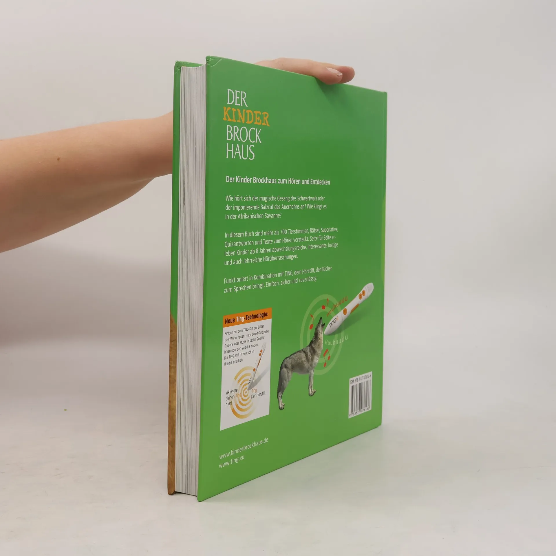 So wurde die Tierwelt noch nie präsentiert. Der neu bearbeitete „Der Kinder Brockhaus Tiere“, ausgestattet mit der innovativen TING-Technologie, macht die faszinierende Welt der Tiere für Augen und Ohren erlebbar. Wie klingt der magische Gesang des Blauwals oder der schrille Ruf der Silbermöwe? Womit klappert die Klapperschlange? Wer wird „König der Lüfte“ gennant? Dieses Themenlexikon bietet Kindern ab 8 Jahren alles, was sie schon immer über Tiere wissen wollten.