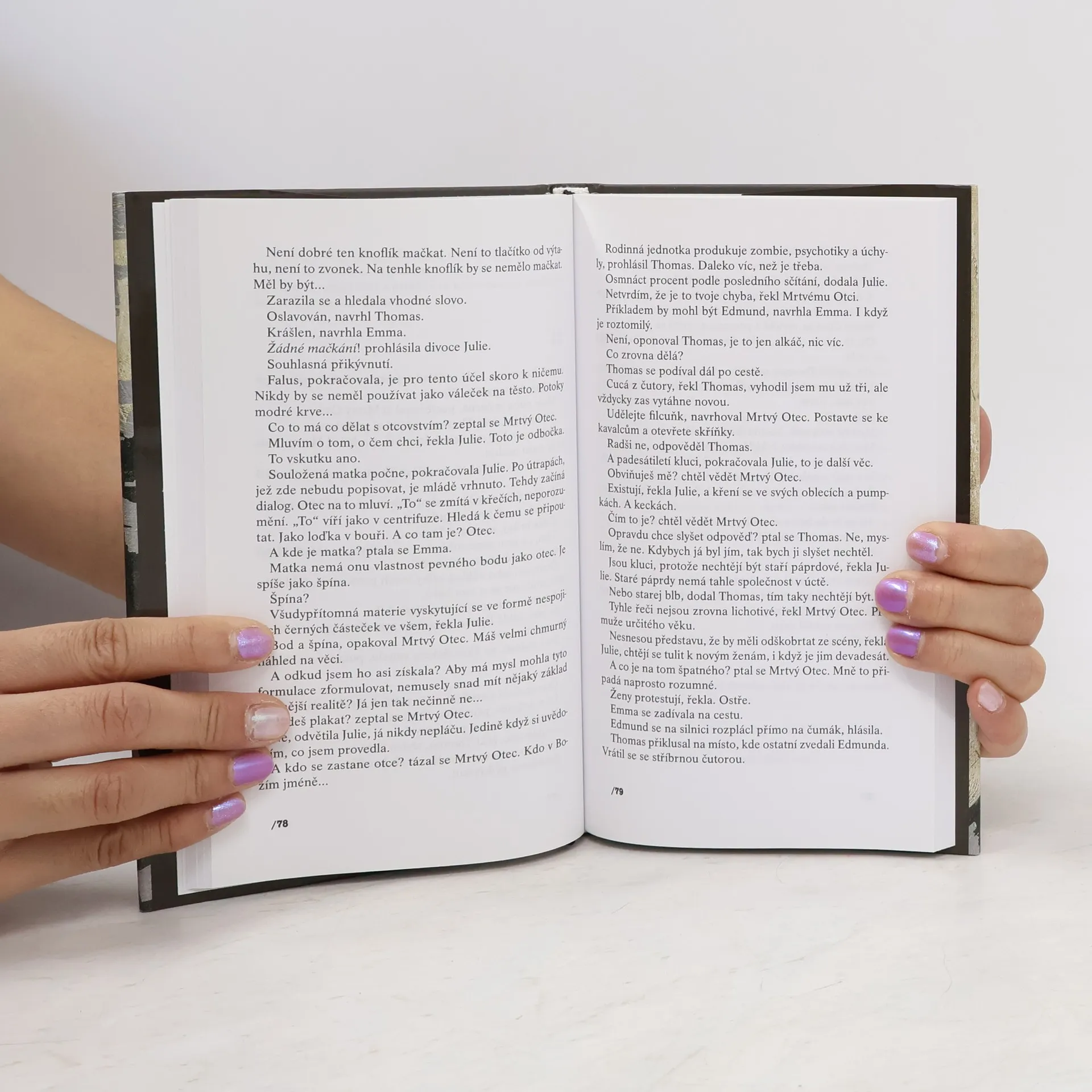 „Statečný román o všem“ nejčtenějšího z postmoderních amerických autorů 70. a 80. let je svéráznou a vtipnou hyperbolou o světě, jak ho viděl Donald Barthelme (1931–1989), zasazenou mimo známý čas i prostor, a přesto každému tak povědomou. Stylem podobným jeho Padesáti povídkám (Argo, 1999) a stylem zcela nezaměnitelným navozuje úvodní situaci románu: „Je to úplně normální noha, až na to, že je sedm metrů vysoká.“ Obrovské tělo se pohybuje krajinou. Patří Mrtvému Otci. Je mrtvý a není mrtvý; mluví, uráží, řídí, žadoní, popichuje, svádí. Je moudrý, je vtipný, je ješitný, je napůl mechanický, je strašlivý ve svém hněvu, a přece bezmocný jako dítě, je… mrtvý? Krajinou nebezpečných Wendů a Velkého Otce Hada jej na provaze táhne procesí devatenácti lidí. Thomas, Julie, Emma, Edmund a další jej opečovávají i urážejí, krmí a usmiřují a také připravují na tajemný cíl své pouti. Jazykem naprosto nespoutaným nás Donald Barthelme provází příběhem, v němž je jasné jen jedno: že není jasné nic.