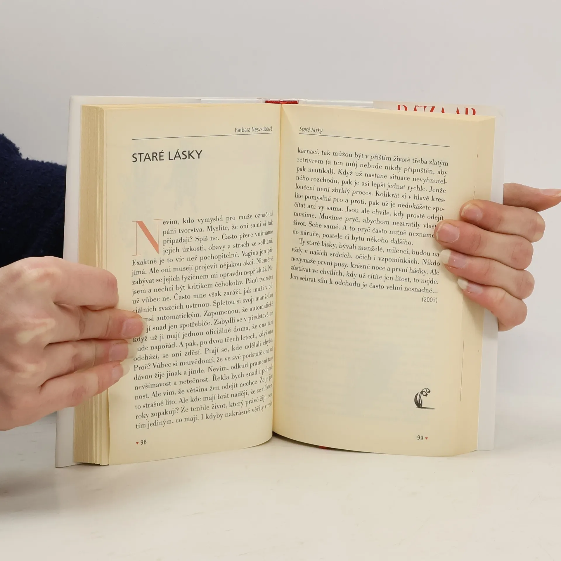 Ryze feministické fejetony, které vznikly za posledních 6 let jak pro časopis Harperś Bazaar, tak pro Redhot, či Mladou frontu. Knížka obsahuje i fejetony původní, dosud nepublikované. Tématem jsou většinou muži, soužití s nimi, partnerství, přátelství a rodičovství. Hlavní linií knížky je láska a sexuální přitažlivost, což s nadhledem a vtipem ilustrují kresby Mišo Dúhy...