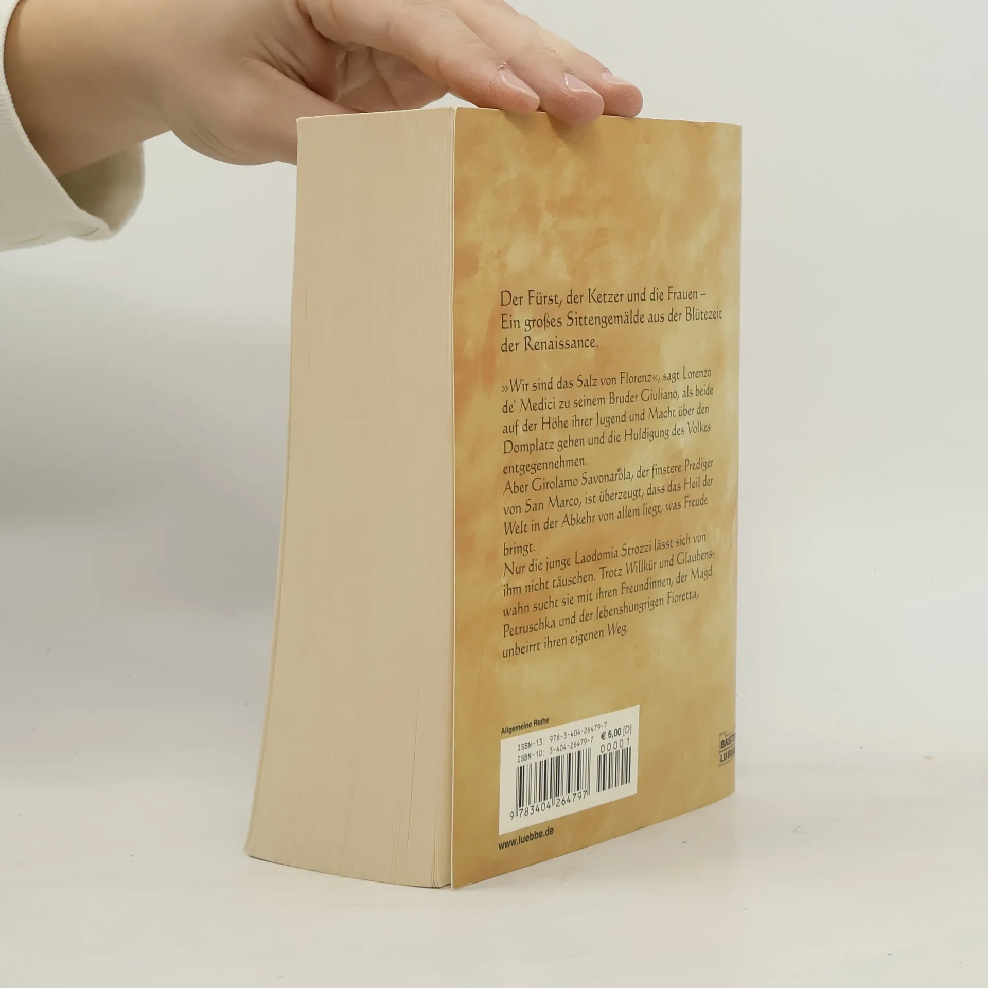 "Wir sind das Salz von Floren", sagt Lorenzo de Medici zu seinem Bruder Giuliano, als beide auf der Höhe ihrer Jugend und Macht über den Domplatz gehen und die Huldigung des Volkes entgegennehmen. Aber Girolamo Savonarola, der finstere Prediger von San Marco, ist überzeugt, dass das Heil der Welt in der Abkehr von allem liegt, was Freude bringt. Nur die junge Laodomia Strozzi lässt sich von ihm nicht täuschen. Trotz Willkür und Glaubenswahn sucht sie mit ihren Freundinnen, der Magd Petruschka und der lebenshungrigen Fioretta, unbeirrt ihren eigenen Weg. Der prächtige Fürst, der fanatische Mönch und die schöne Patrizierin - durch ihre Augen öffnet sich der Blick auf die dramatische Zeit der Renaissance, die uns wie ein dunkler Spiegel der Gegenwart erscheint
