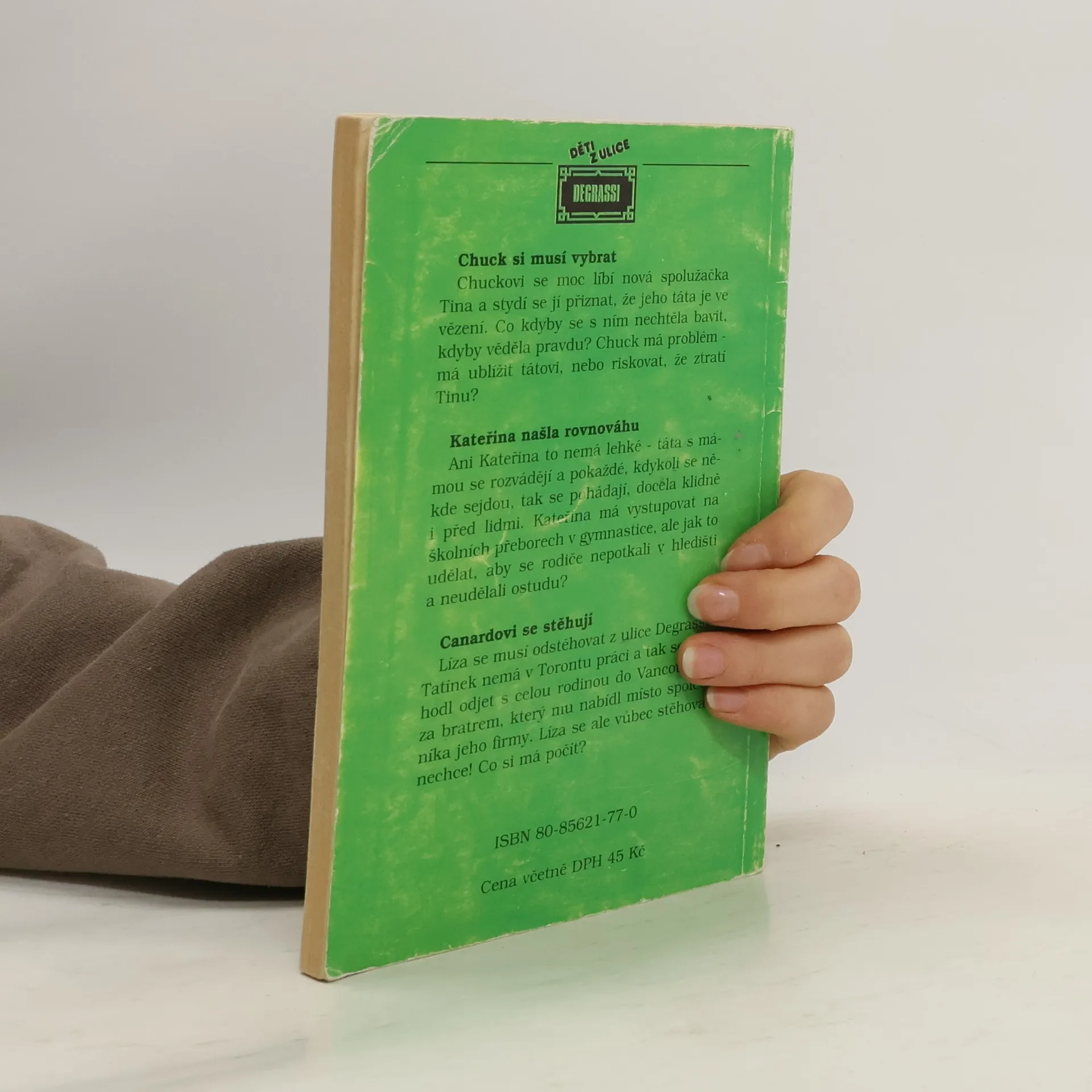Knížka ze série Děti z ulice Degrassi, obsahuje tyto povídky: Chuck si musí vybrat: Chuckovi se moc líbí jeho nová spolužačka Tina, ale stydí se jí přiznat, že jeho táta je ve vězení. Co kdyby se s ním pak nechtěla bavit? Chuck má problém - má ublížit tátovi, nebo riskovat, že ztratí Tinu? Kateřina našla rovnováhu: Ani Kateřina to nemá lehké - její rodiče se rozvádějí a pokaždé, když se někde potkají, hádají se, docela klidně i před lidmi. Kateřina má vystupovat na školních přeborech v gymnastice. Jak to udělat, aby se rodiče nepotkali v hledišti a neudělali jí ostudu? Canardovi se stěhují: Líza se musí odstěhovat z ulice Degrassi! Tatínek nemá v Torontu práci, a tak se rozhodl odstěhovat se s rodinou do Vancouveru, kde žije jeho bratr a nabízí mu místo společníka v jeho firmě. Líza se ale vůbec stěhovat nechce! Co si má počít?