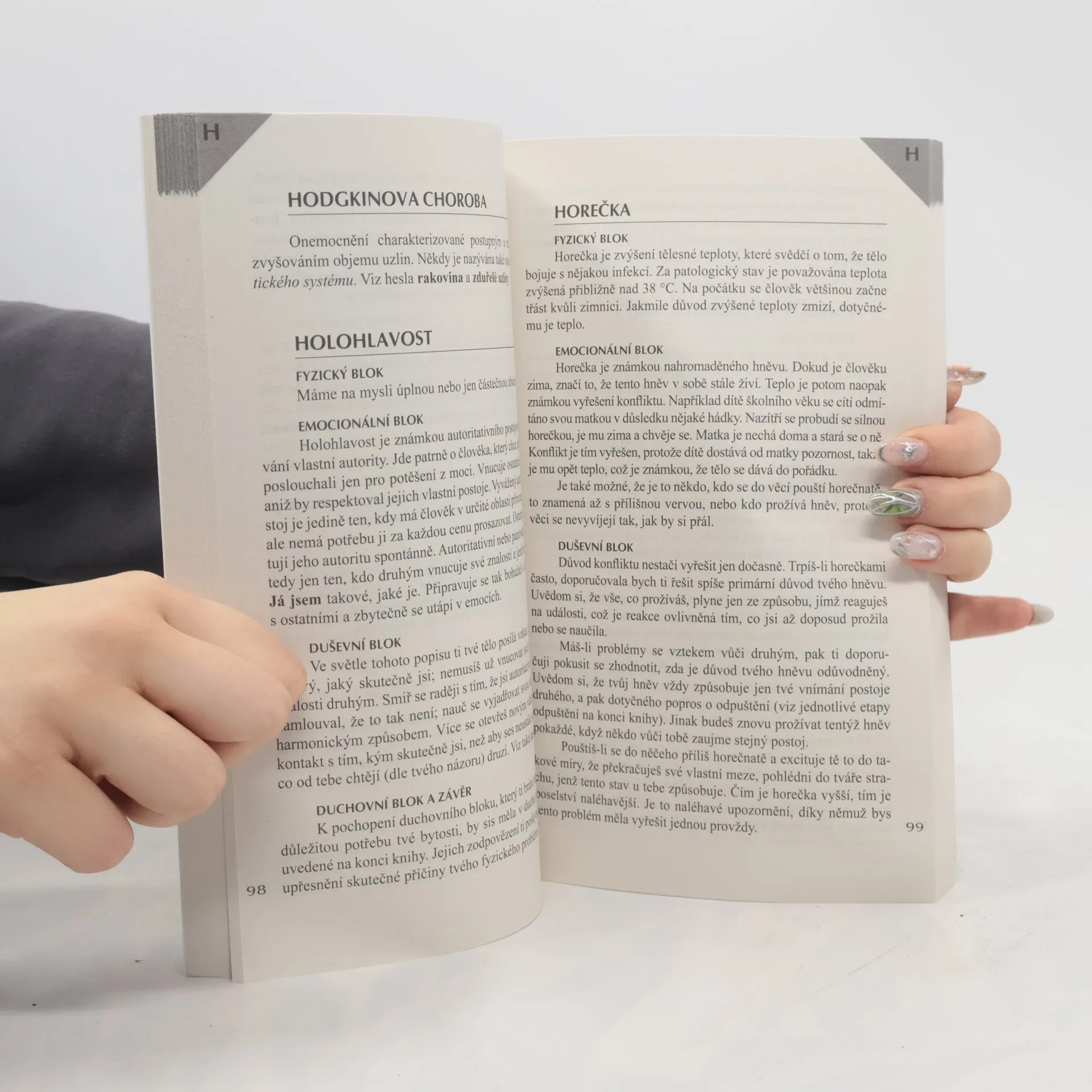 Abecedně řazený seznam nemocí s výčtem příčin: tzv. fyzický, emocionální, duševní a duchovní blok. Autorka vidí příčinu v "metafyzice" nemocí a poskytuje odpovídající rady.