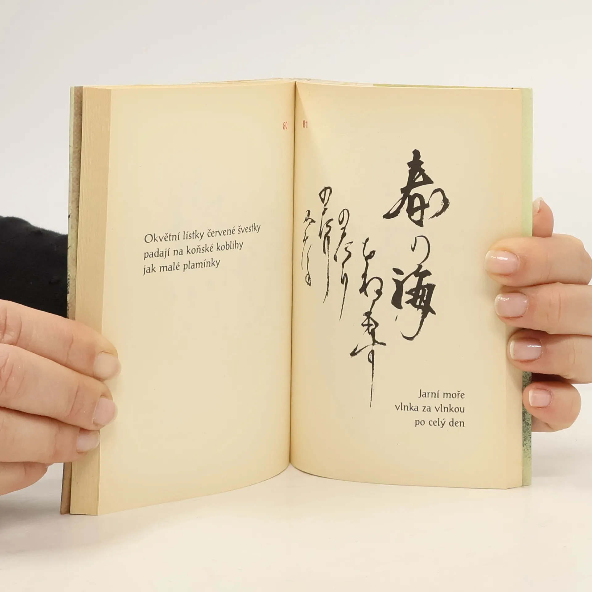 Výbor z japonských haiku 17.–19. stol. Autoři: Bašó, Issa, Buson a Santóka. Z japonštiny přeložil a úvod napsal Antonín Líman. Originální kaligrafie Petr Geisler.